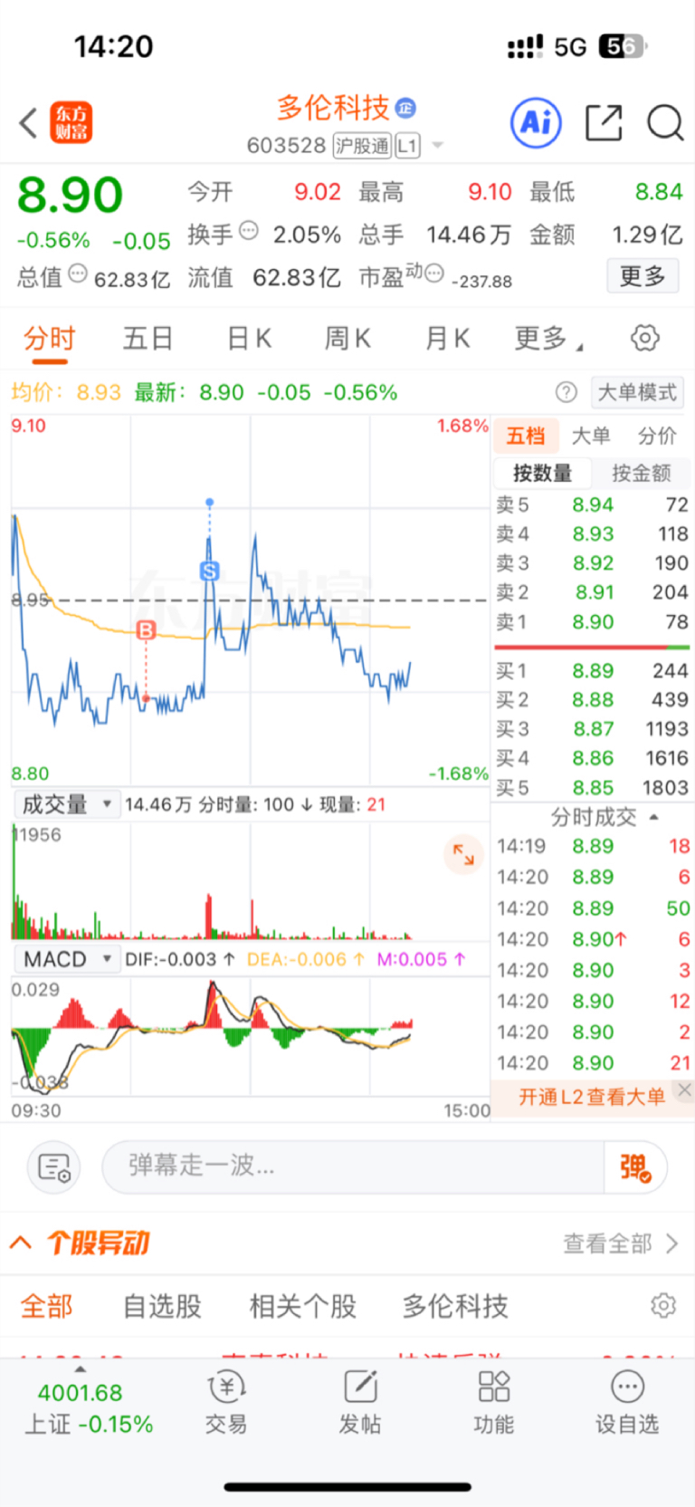 $多伦科技(SH603528)$ 每次虚空卖点我都卖飞,还有半个小时,有奇迹吗?