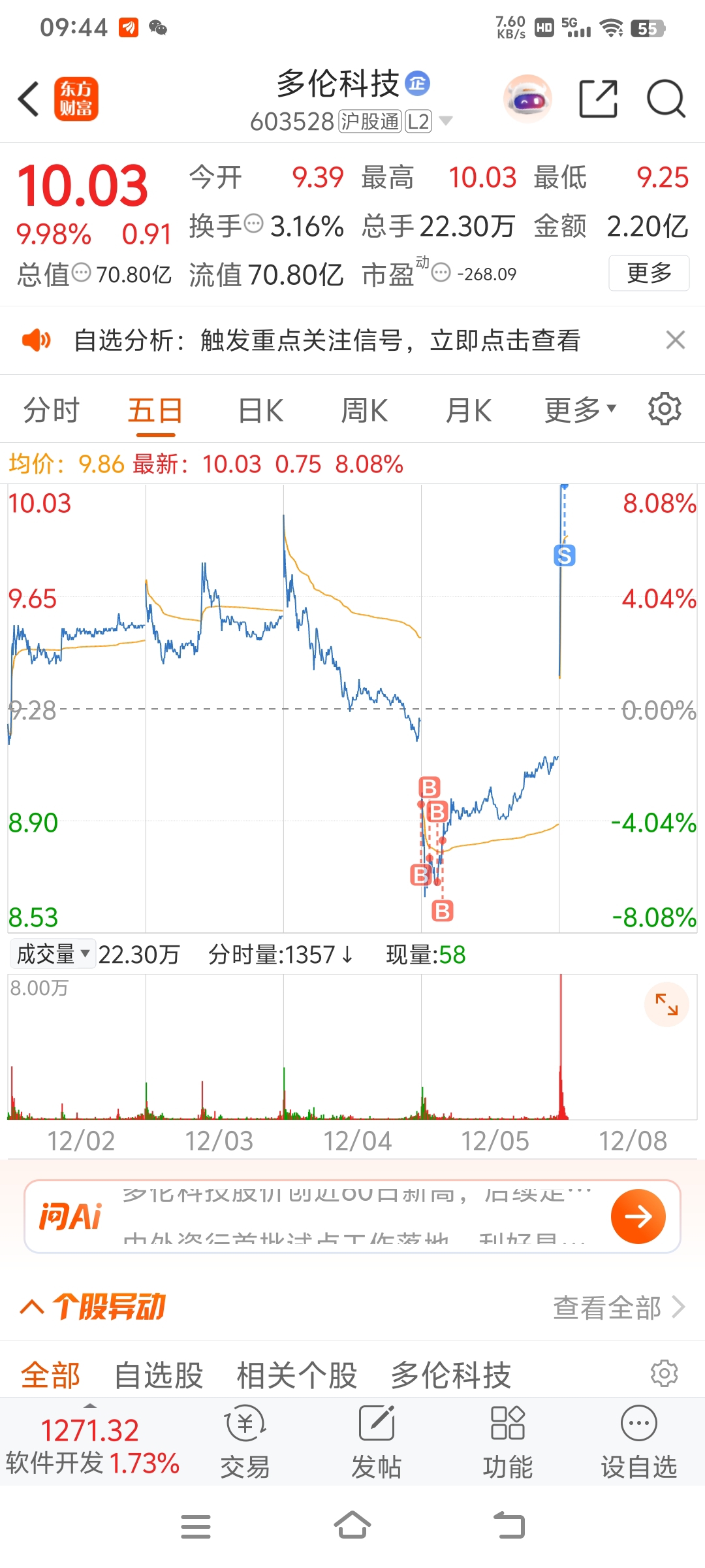 $多伦科技(SH603528)$ 谢谢主力,涨停我先出一半