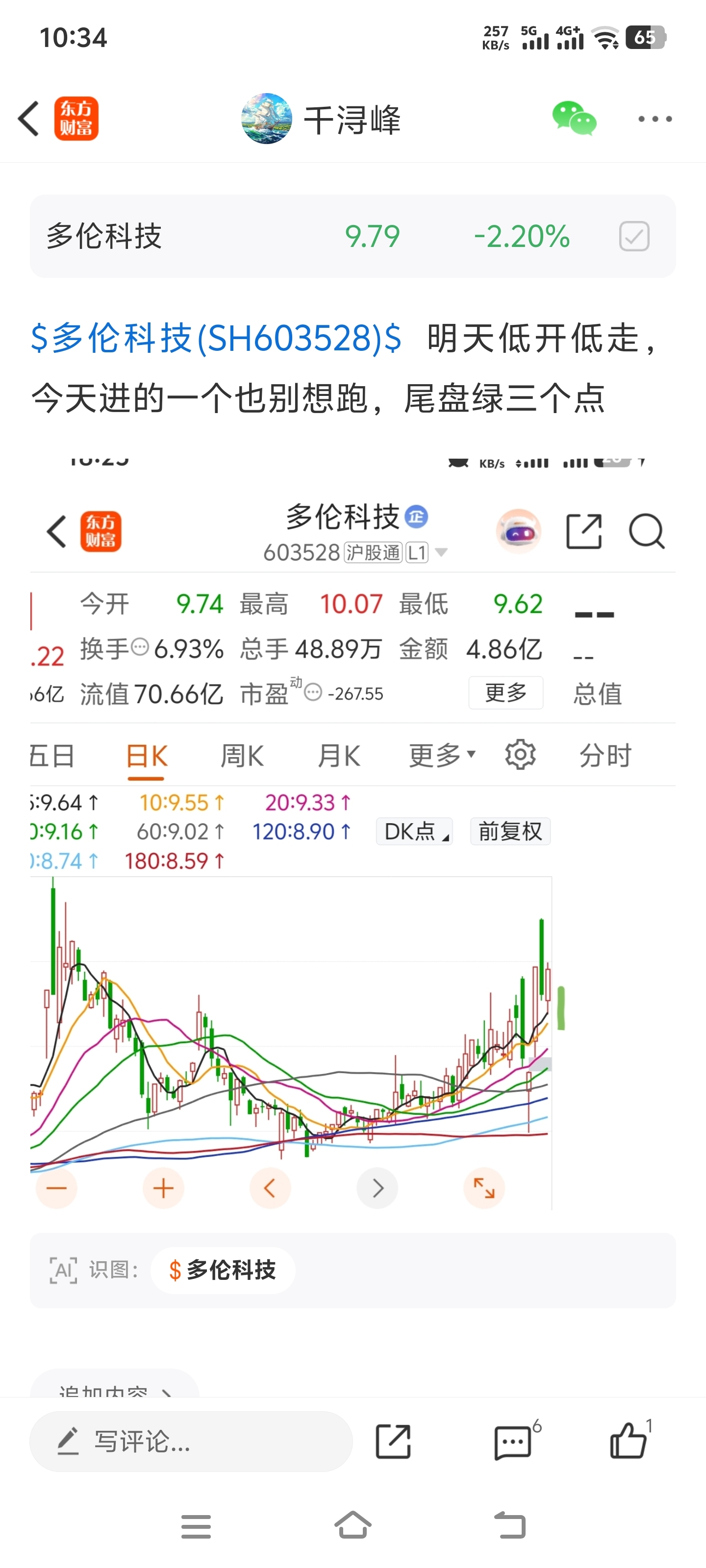 $多伦科技(SH603528)$ 看样子不用等到尾盘了,马上就跌到三个点