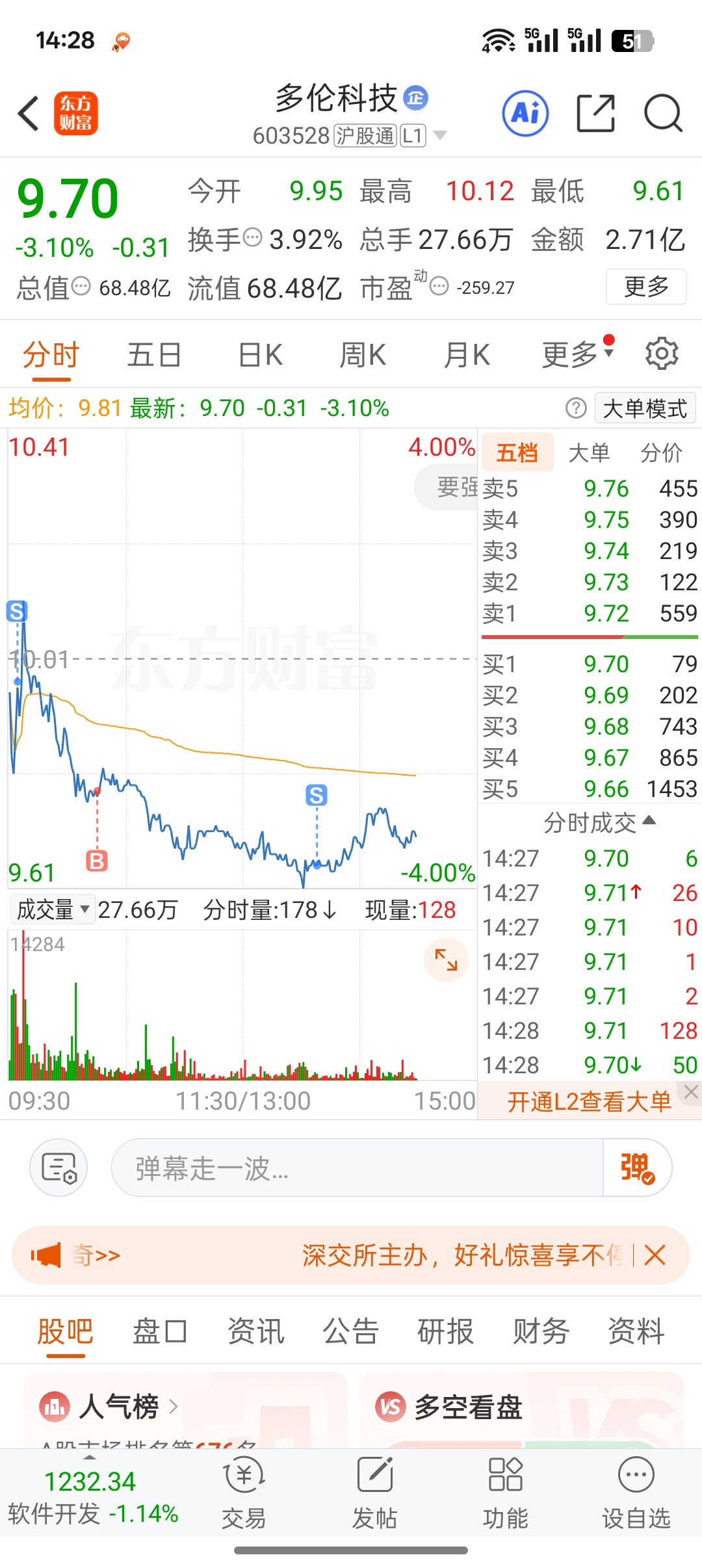 $多伦科技(SH603528)$ 今天高点没卖掉后悔,走了以后不来了,这种庄家哪里是人,太垃圾