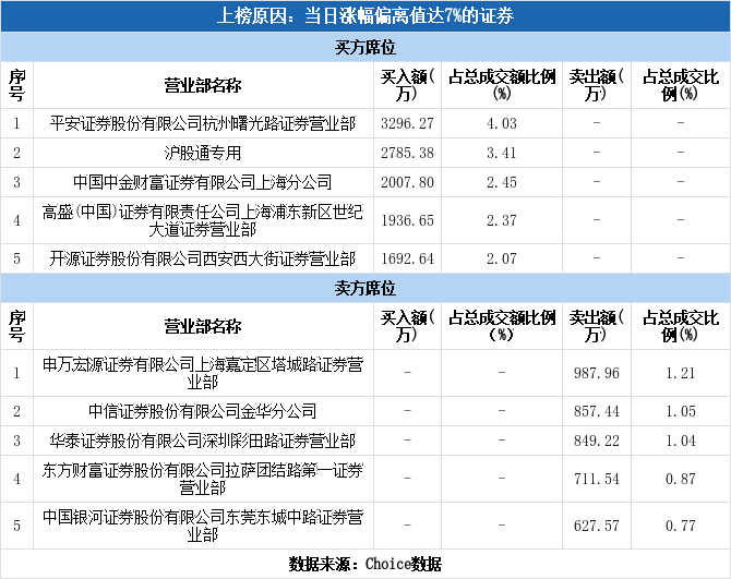 沪股通现身龙虎榜,多伦科技涨停(12-16)
