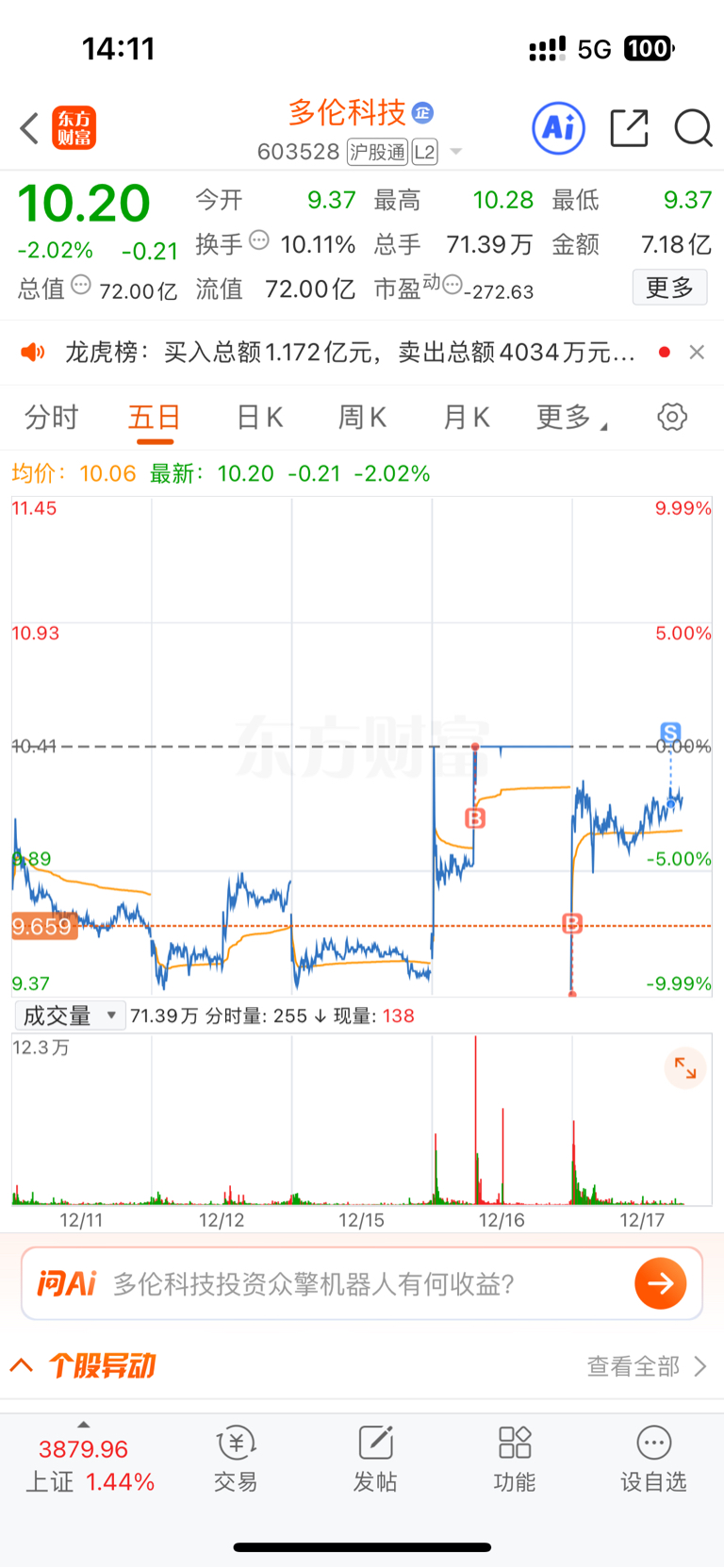 $多伦科技(SH603528)$ 昨天打板,今天直接挂的竞价涨停,原因是360。想着软件跌这么多了应该反弹一下吧,软件股就他最近走势强,看来不来2板。就挂涨停了,没想到主力这么会玩