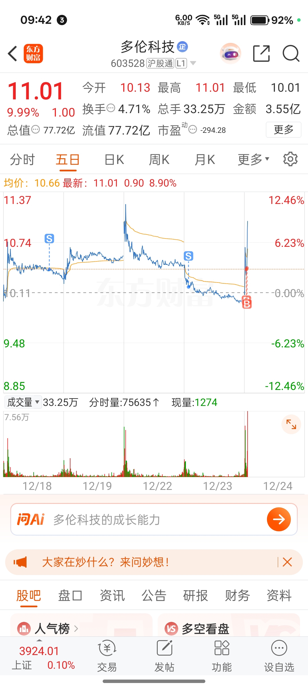 $多伦科技(SH603528)$ 对不起大哥认错了,继续买回来