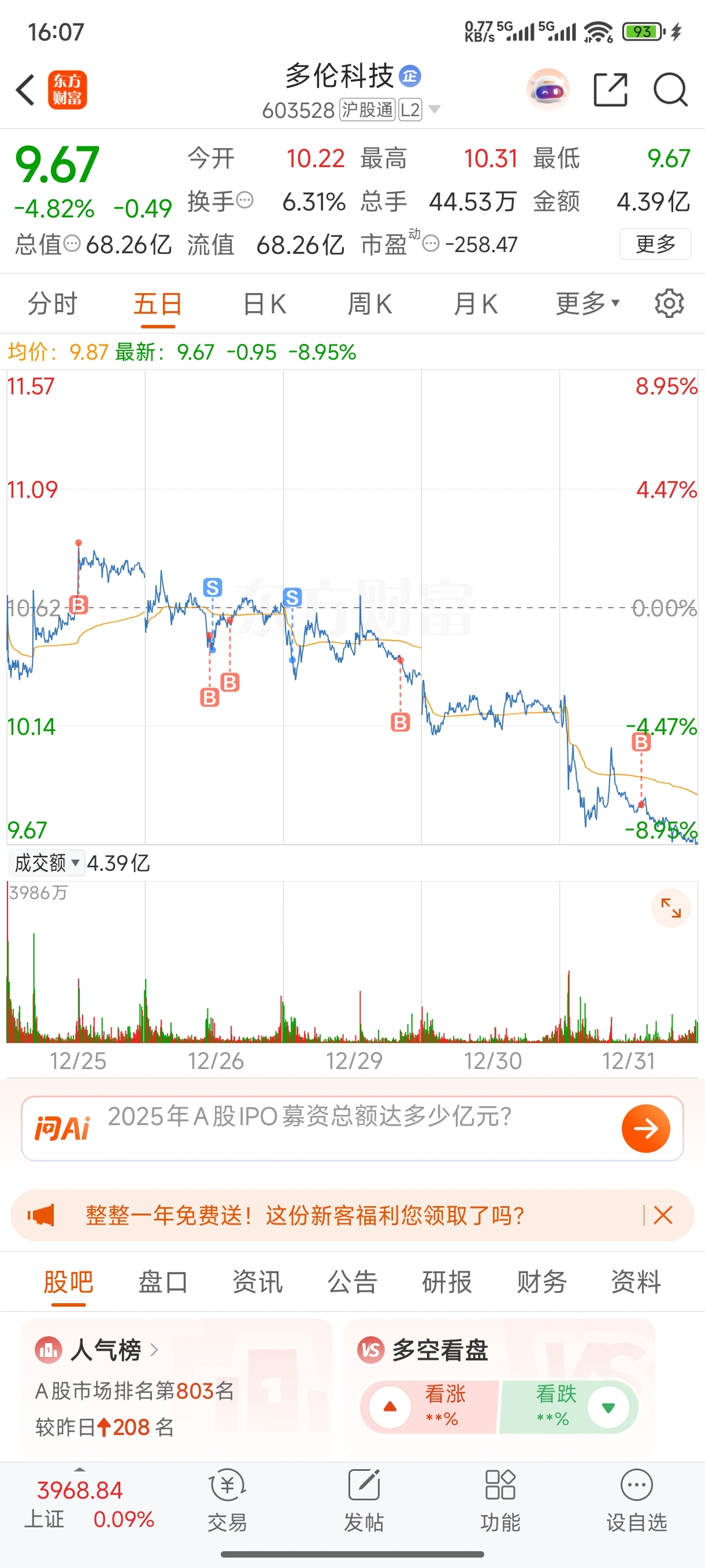 $多伦科技(SH603528)$ 还好前几天卖了,今天手里剩下3000块钱买进去都能继续下跌