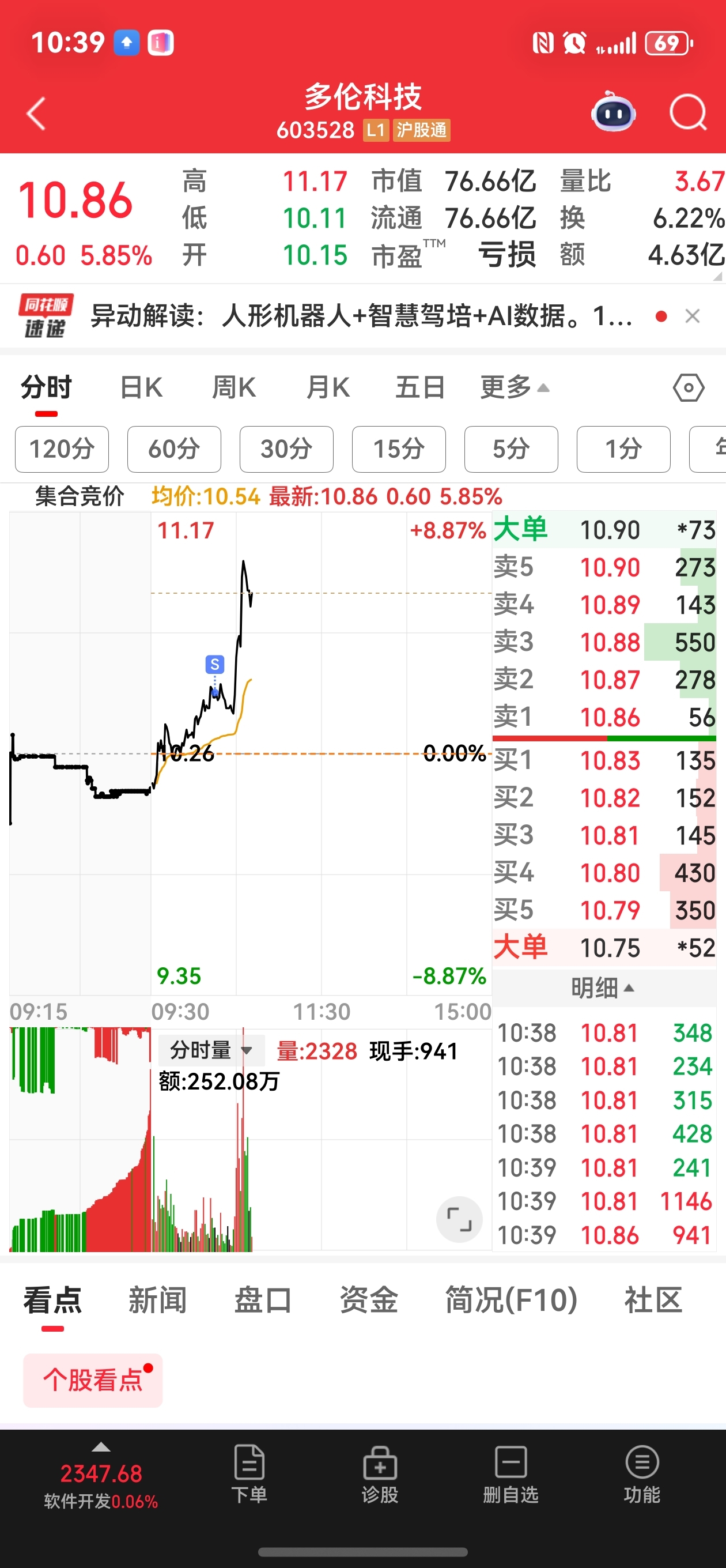 $多伦科技(SH603528)$ 很成功的卖飞了