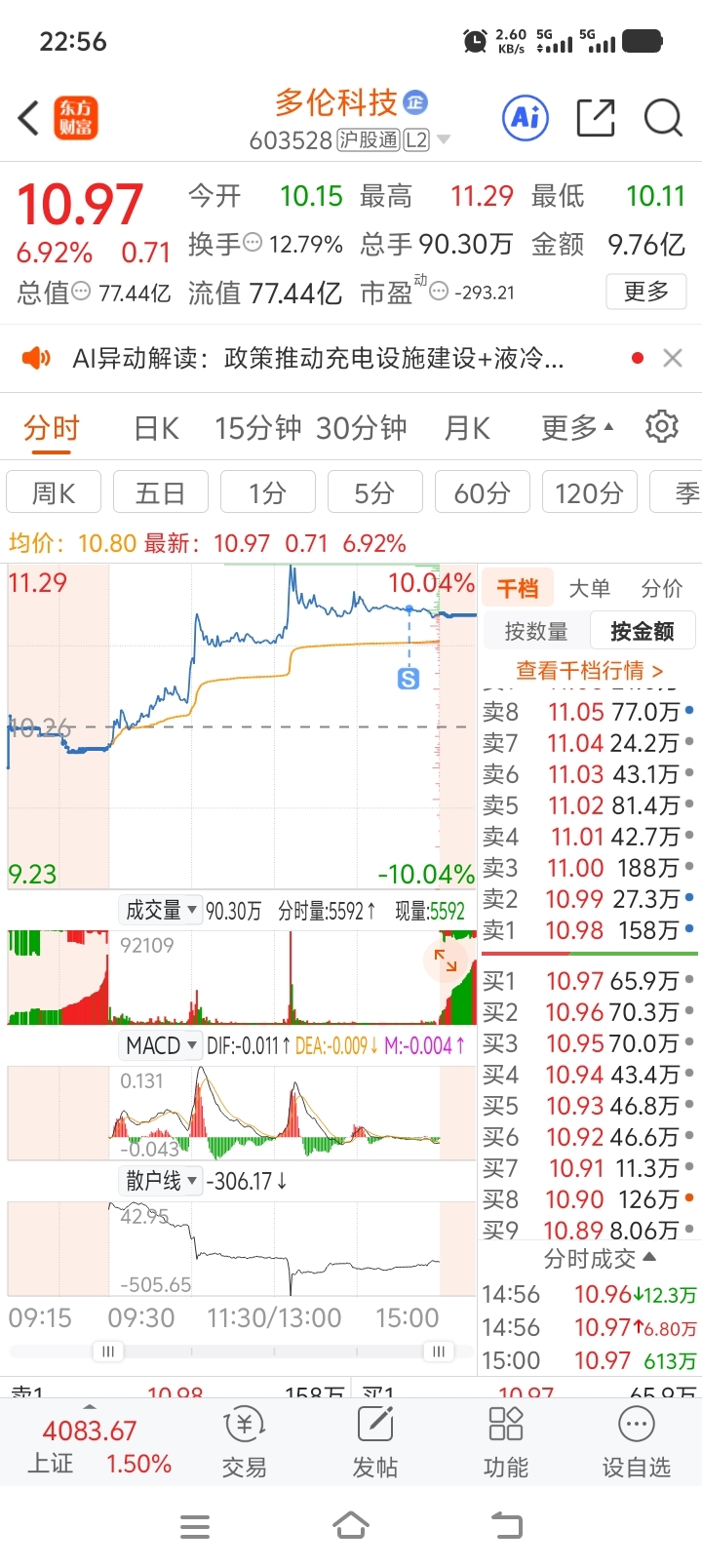 $多伦科技(SH603528)$ 今天出掉了,不知道对还是不对,有高手指点下吗