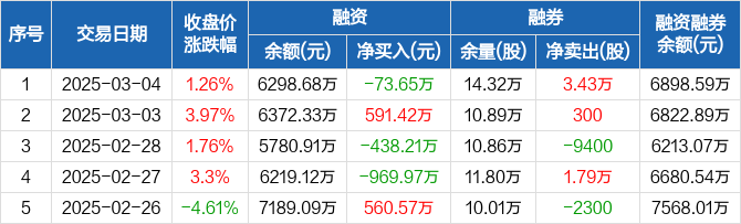 爱玛科技:融资净偿还73.65万元,融资余额6298.68万元(03-04)