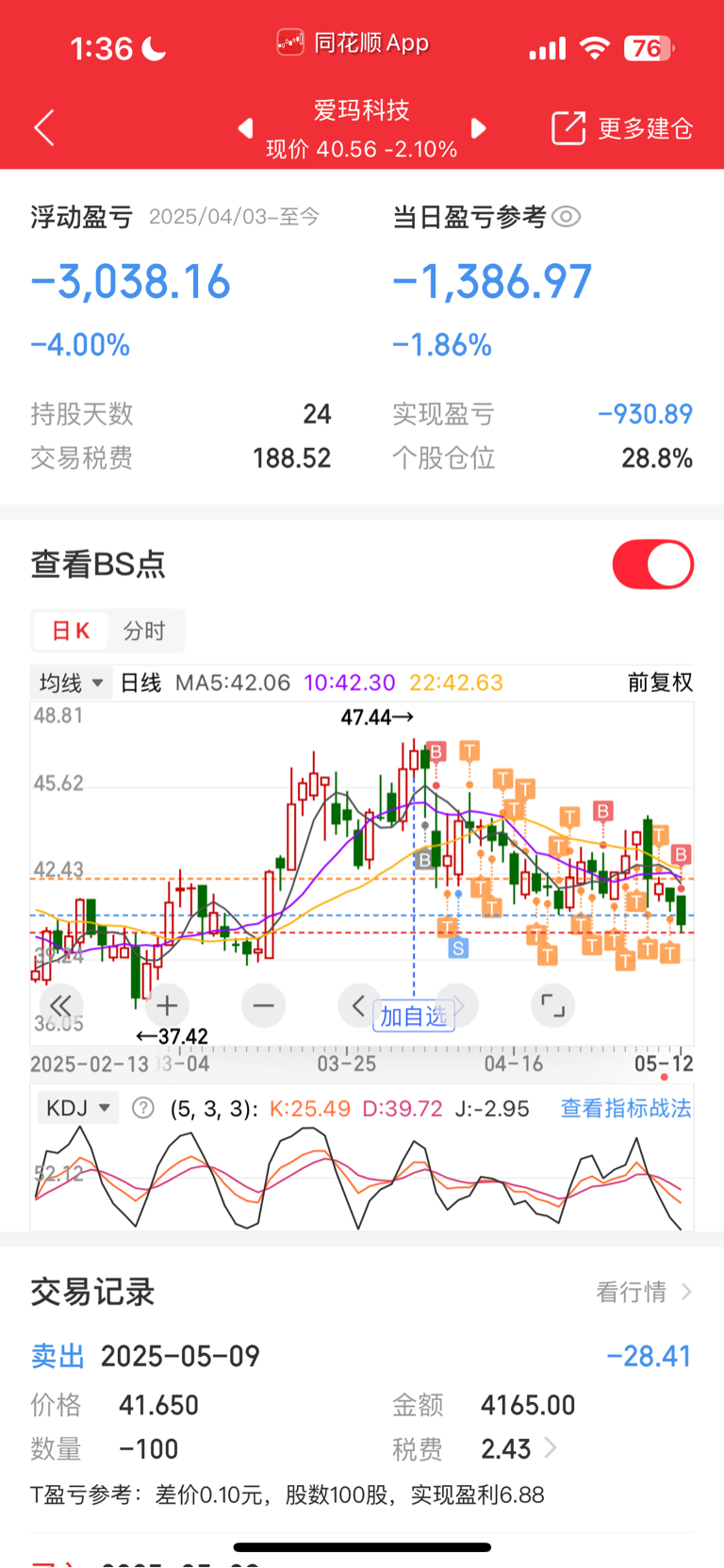 $爱玛科技(SH603529)$ 玩你吗 最高位买入 跌了1个月 做t90胜率 都要亏4个点