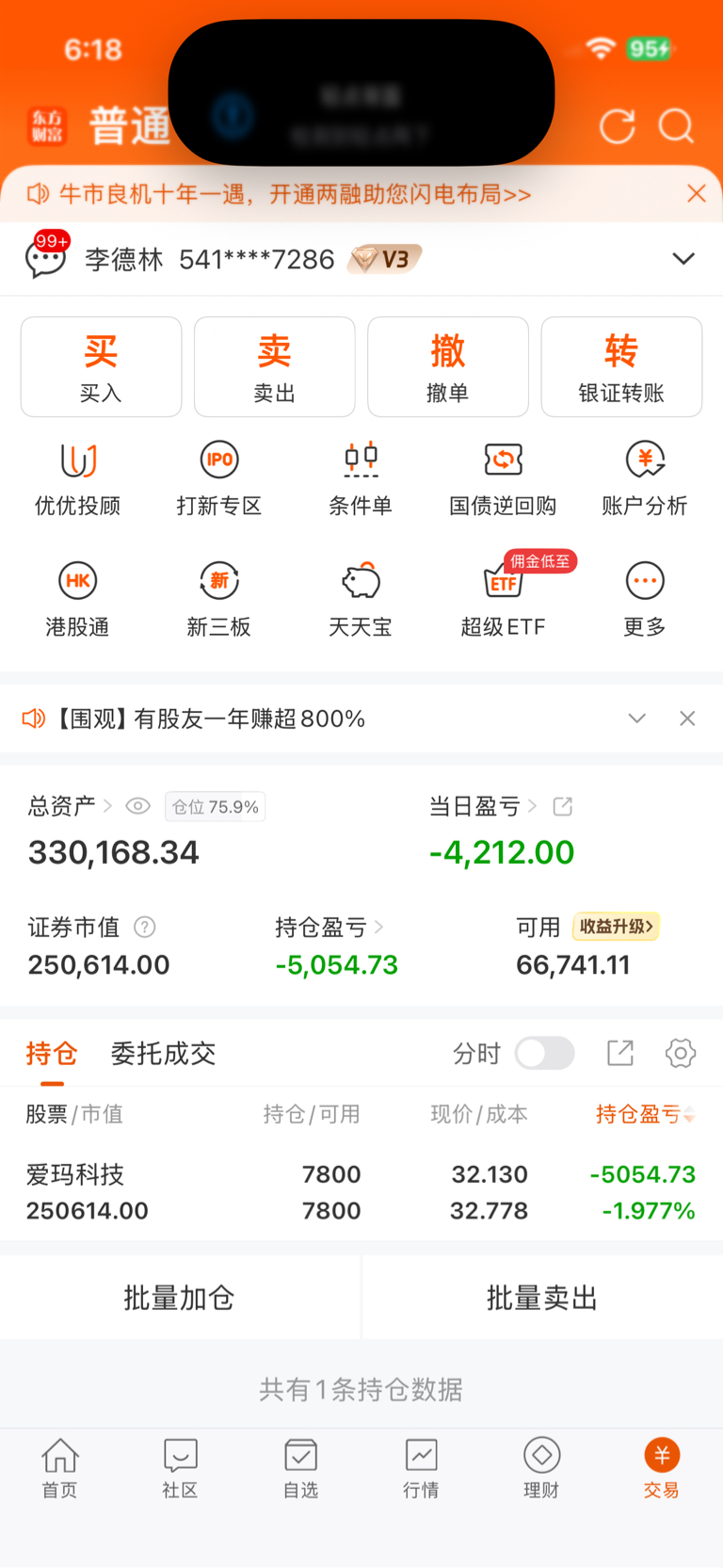 $爱玛科技(SH603529)$ 想补仓 没买进去 这你受得了吗