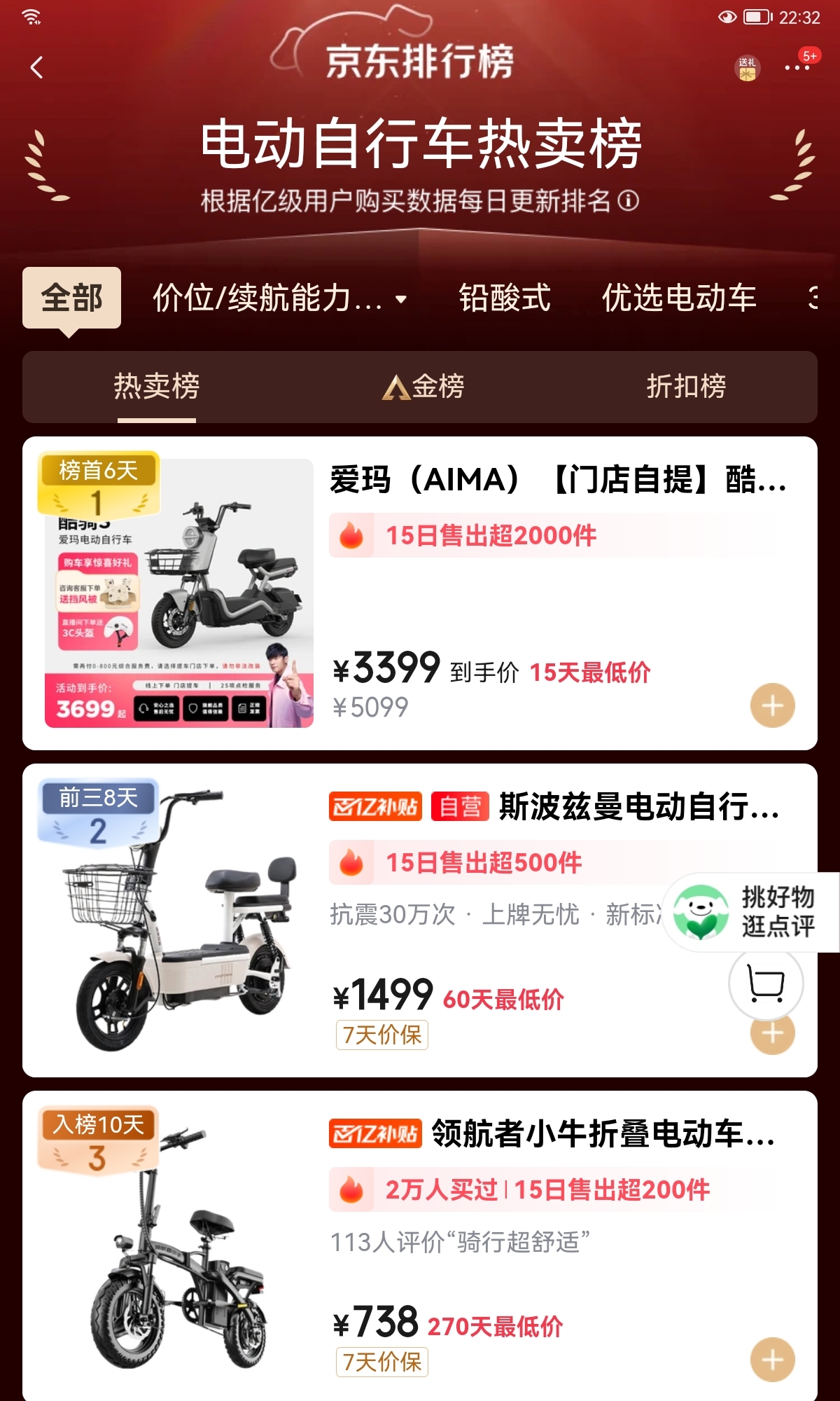 $爱玛科技(SH603529)$ 电动自行车热卖榜,前二都是爱玛的,酷骑S最近15天卖了2000多台