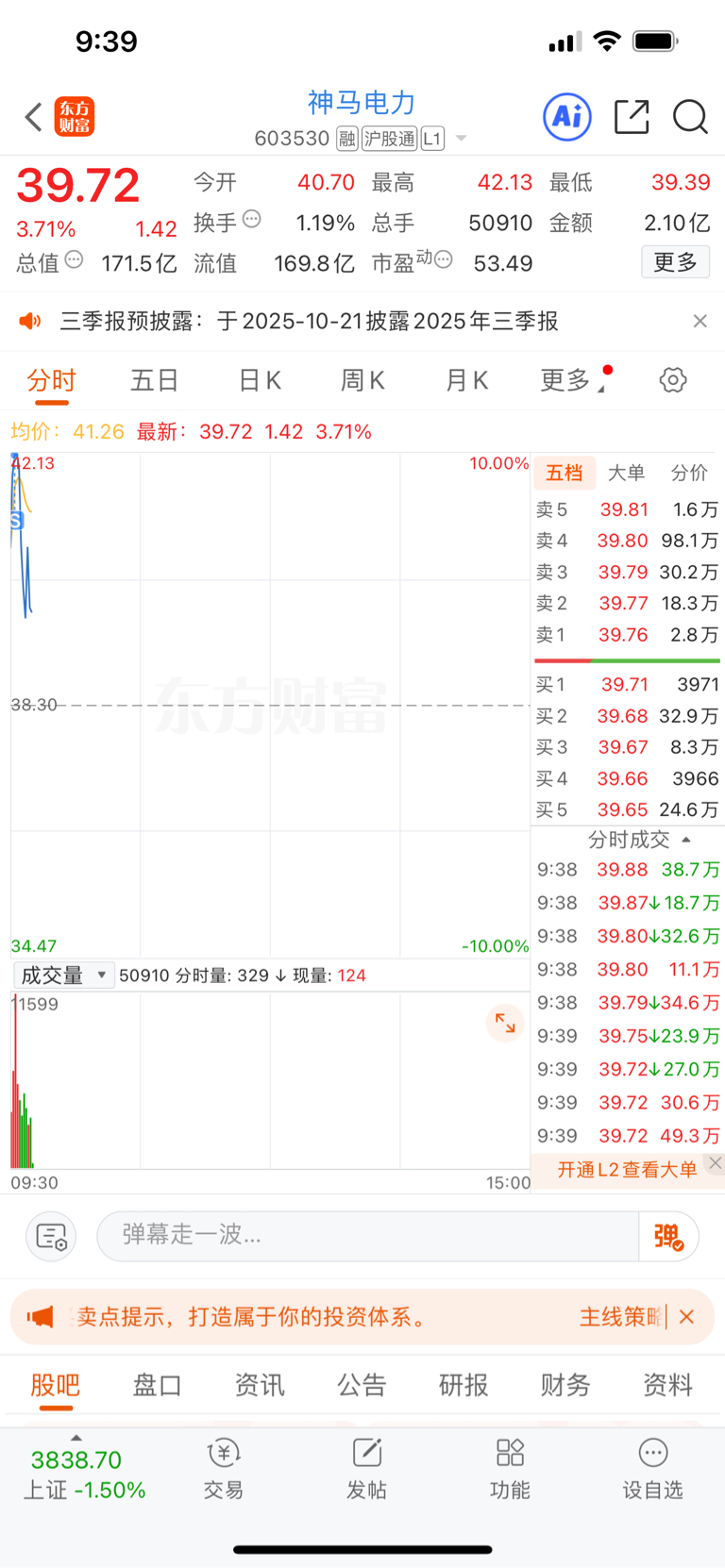 $神马电力(SH603530)$ 睡觉了!留下发财!