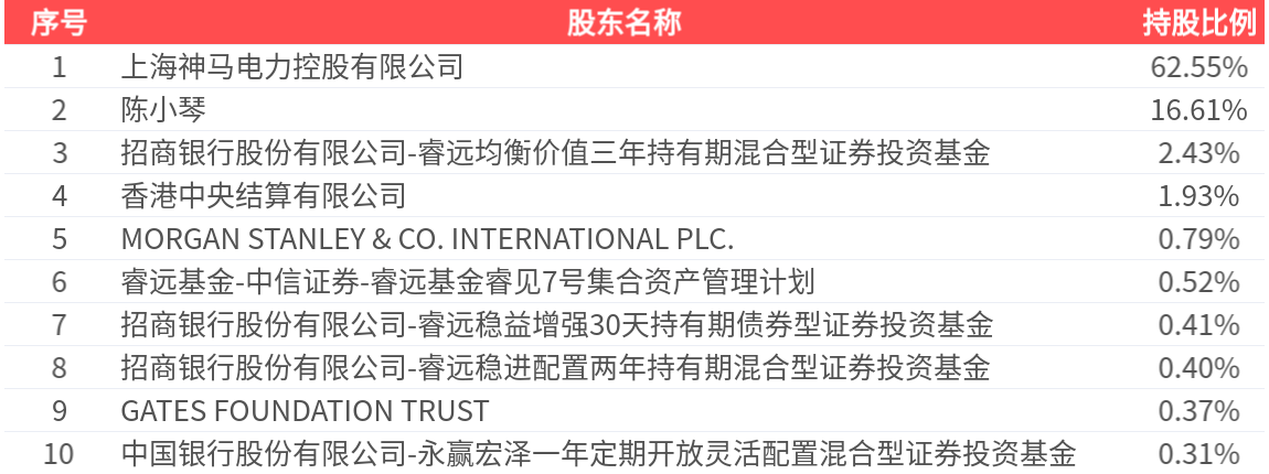 公司股东户数为1.13万户,前十大股东持股数量为3.73亿股,占总股本比例为86.31%,前十大股东持股情况如下: