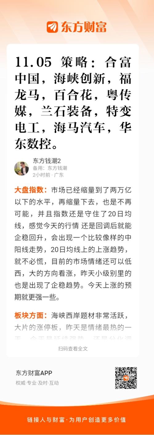 福龙马(603686):上周末是非常高的市场预期,结果高位兑现的走势,昨天是逆势大阳反包,主要是受海峡西岸题材的带动下,并不是主动jin攻的一个走势,所以今天继续连板的预期不是很大,盘中多持股拿一会儿,也是要提防卖飞,如果今天是高开的话,走势就比较好一些,如果低开的话,上攻逐步缩量还是不能追,多拿股观望还是可以。目前市场的预期是马年题材的预期,它有结合海峡西岸题材热点,所以还是有更多一些预期。$福龙马(SH603686)$