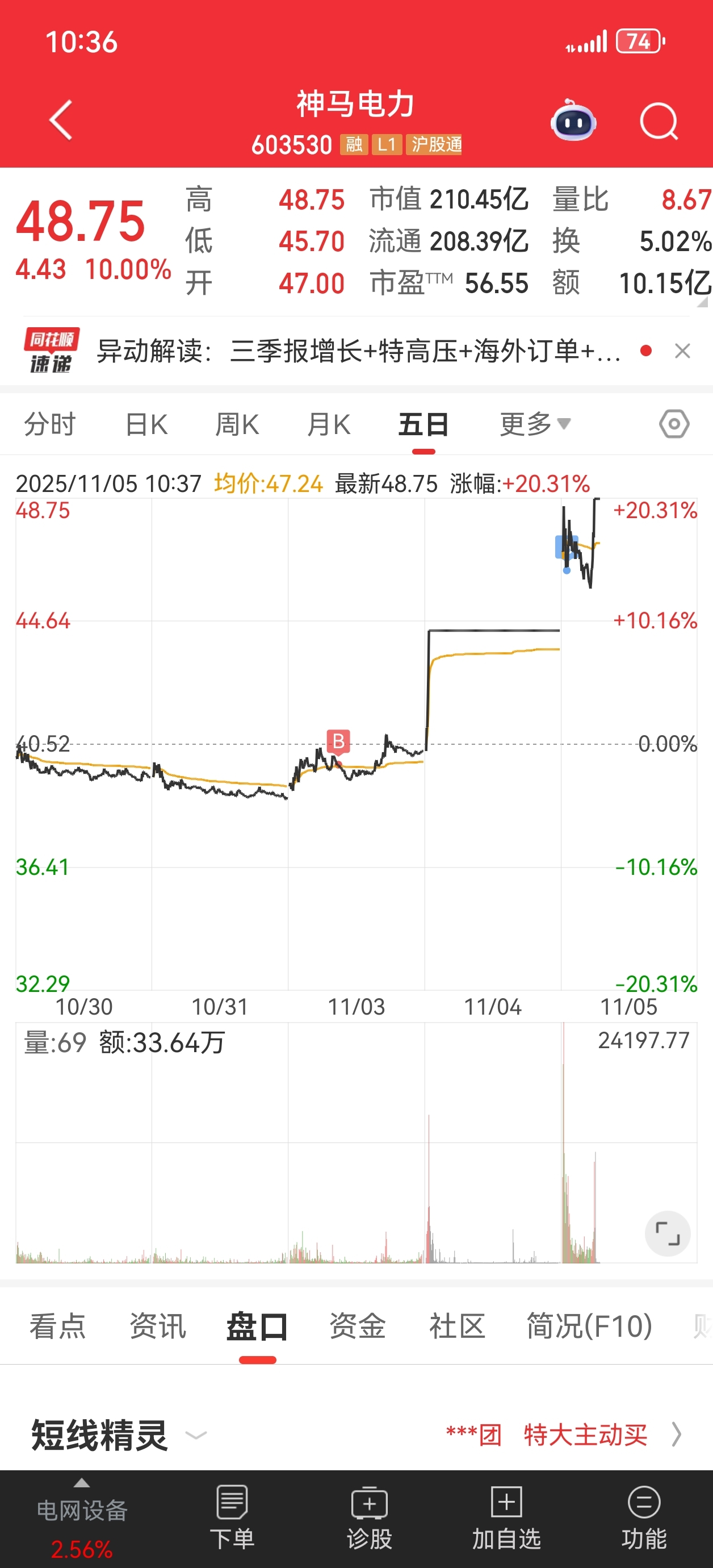 $神马电力(SH603530)$ 我被洗下车了,留下的兄弟发财