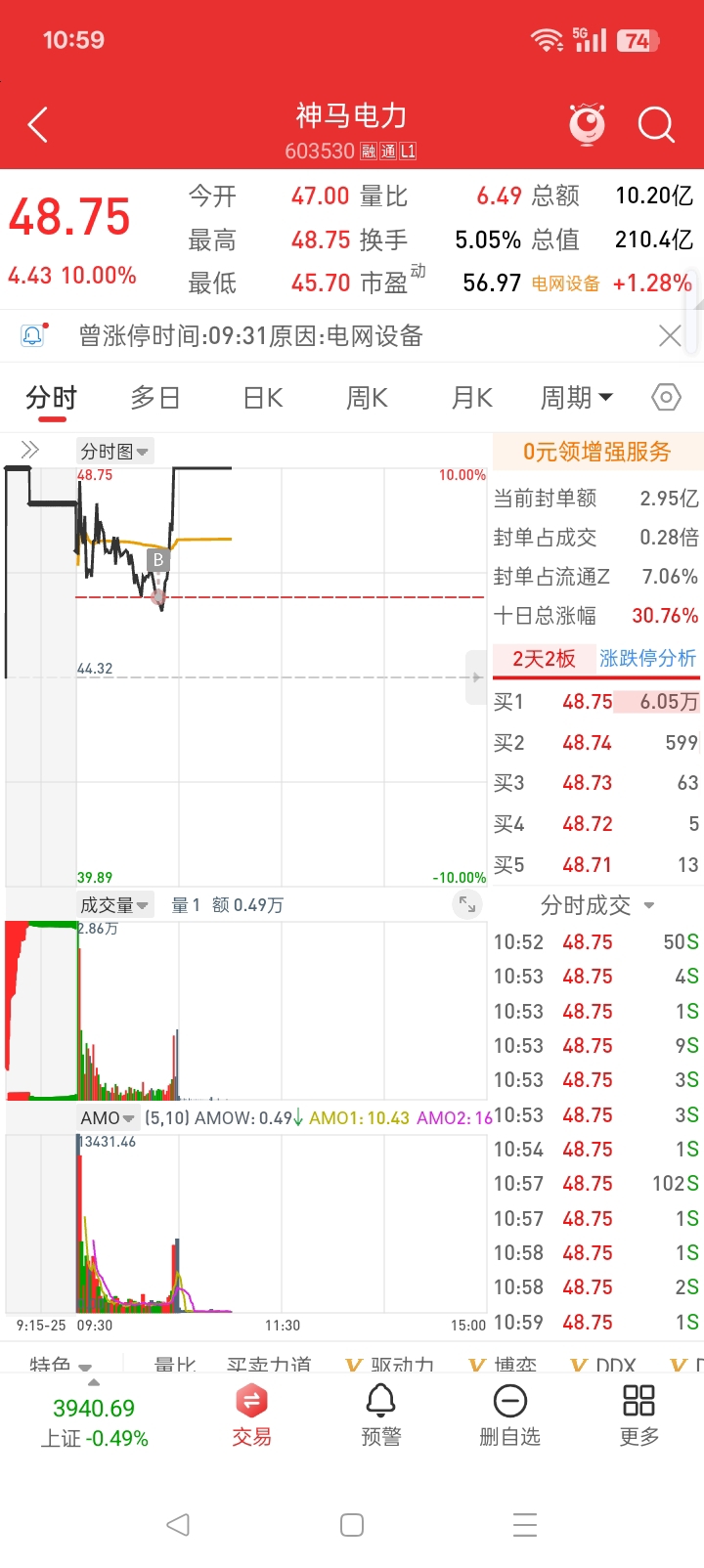 $神马电力(SH603530)$ 一觉醒来,昨天选的几个打板标的都涨停了,只剩下这个了,勉强玩一下吧
