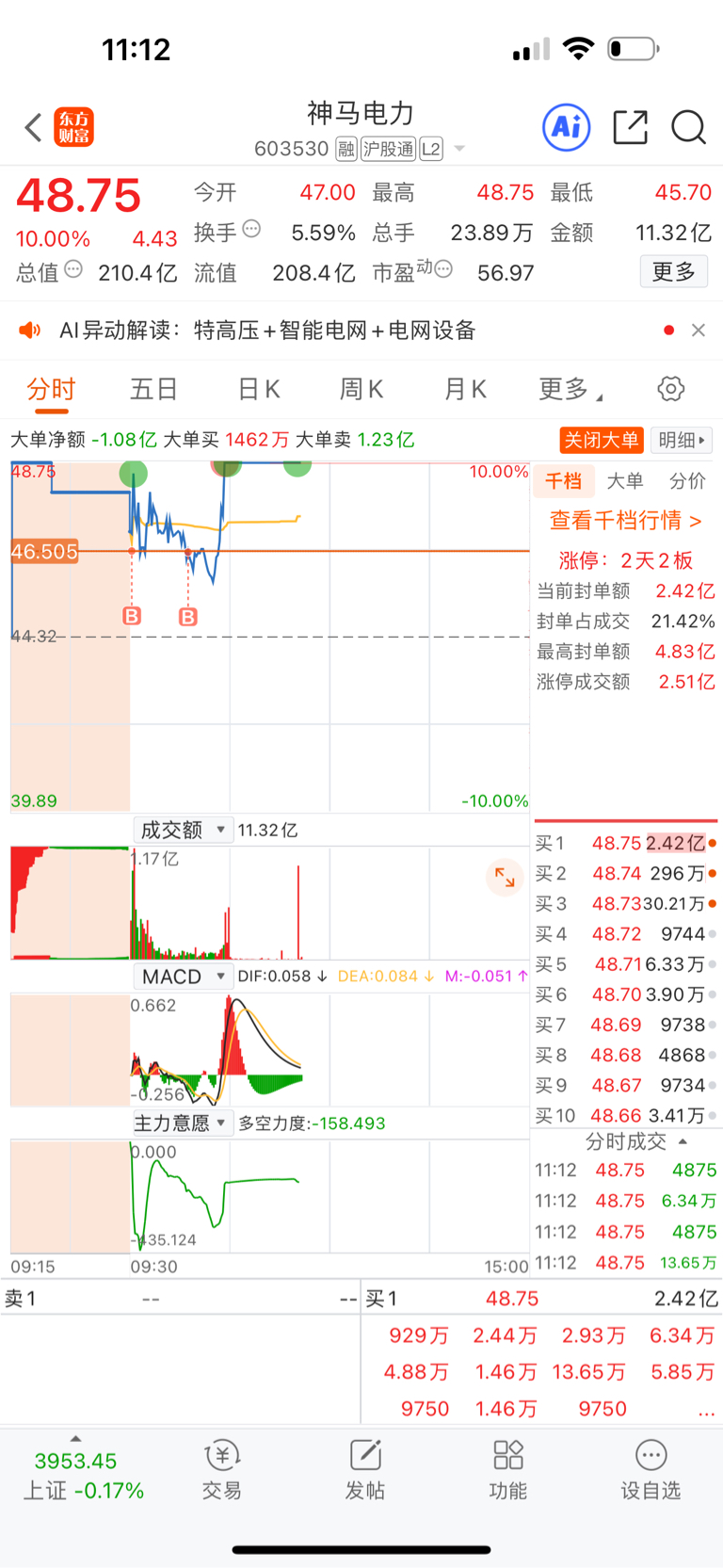 $神马电力(SH603530)$ 普通人能赚钱的只有买涨停的票,没涨停的票看都不要看,浪费时间,这是我这几天总结的经验,只有胆子大,追涨停板才能赚钱,什么趋势票,KDJ,MACD,集合竞价全是骗人的,只有量价不会骗人,这几天买$中电港(SZ001287)$ $大为股份(SZ002213)$ 这两只股把我坑惨了,赚钱没走,亏钱走的