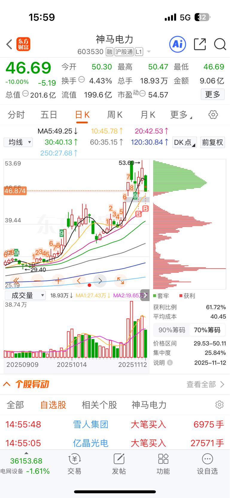 $神马电力(SH603530)$ 下方筹码没动,还是缩量跌停,明天低开再加点仓位