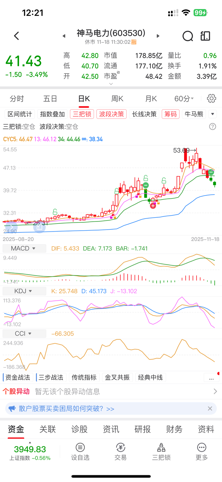 $神马电力(SH603530)$ 昨天没听指南针得!
