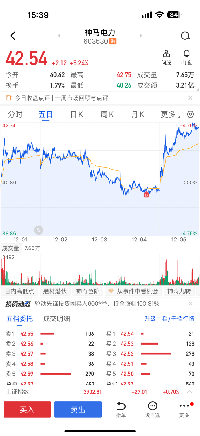 $神马电力(SH603530)$ 今天不走,周一再出掉