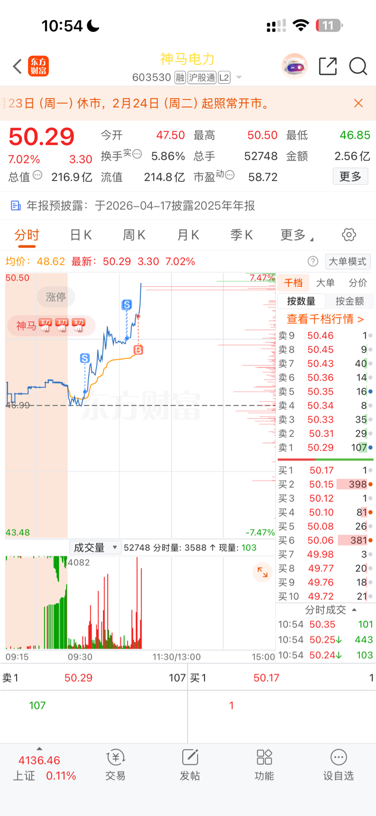 $神马电力(SH603530)$ 这个反t做的