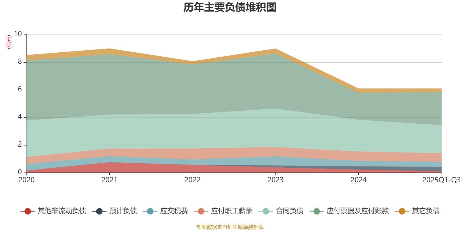 负债重大变化方面,截至2025年三季度末,公司应付票据及应付账款较上年末增加22.66%,占公司总资产比重上升2.03个百分点;其他非流动负债较上年末减少54.16%,占公司总资产比重下降0.32个百分点;预计负债较上年末增加28.12%,占公司总资产比重上升0.3个百分点;合同负债较上年末减少11.54%,占公司总资产比重下降0.26个百分点。