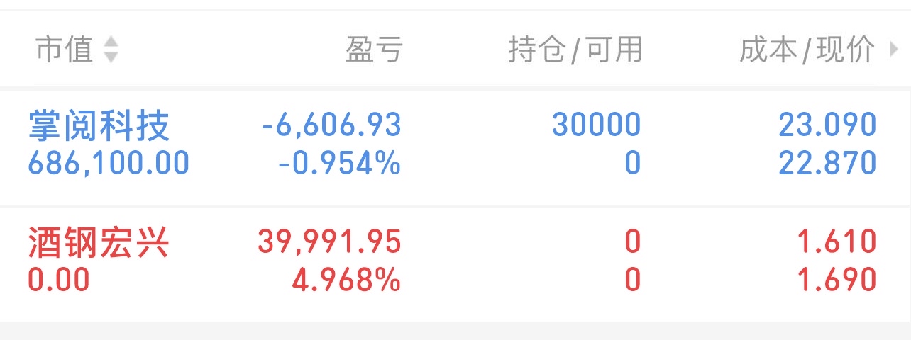 $掌阅科技(SH603533)$ $酒钢宏兴(SH600307)$ 入了,明天冲高就走