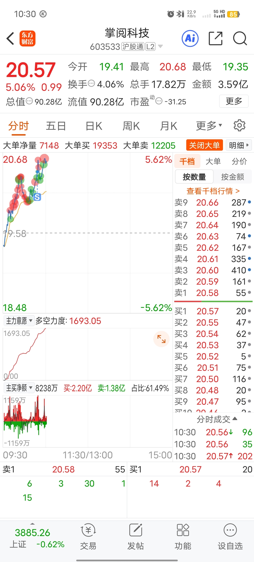 $掌阅科技(SH603533)$ 跑路了,留下的发财,20.42跑路了