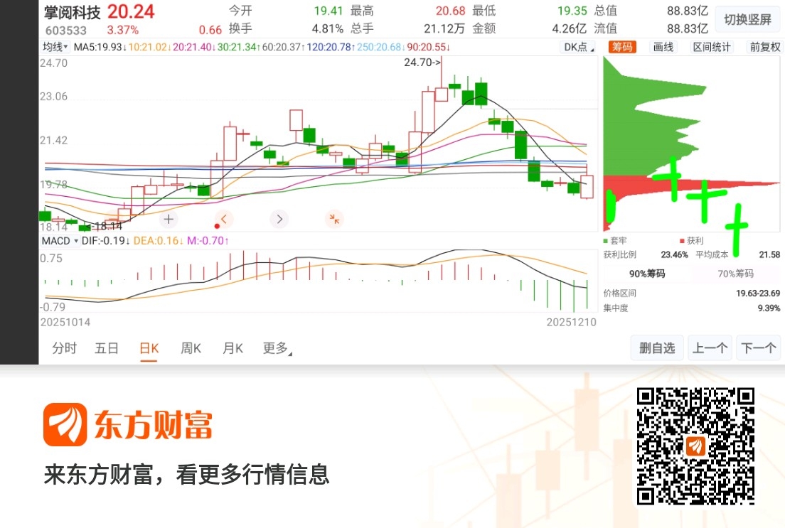 大盘下午如果没有回拉,就要小心掌阅明天低开低走或者继续阴跌吞没今天的阳线!不是大