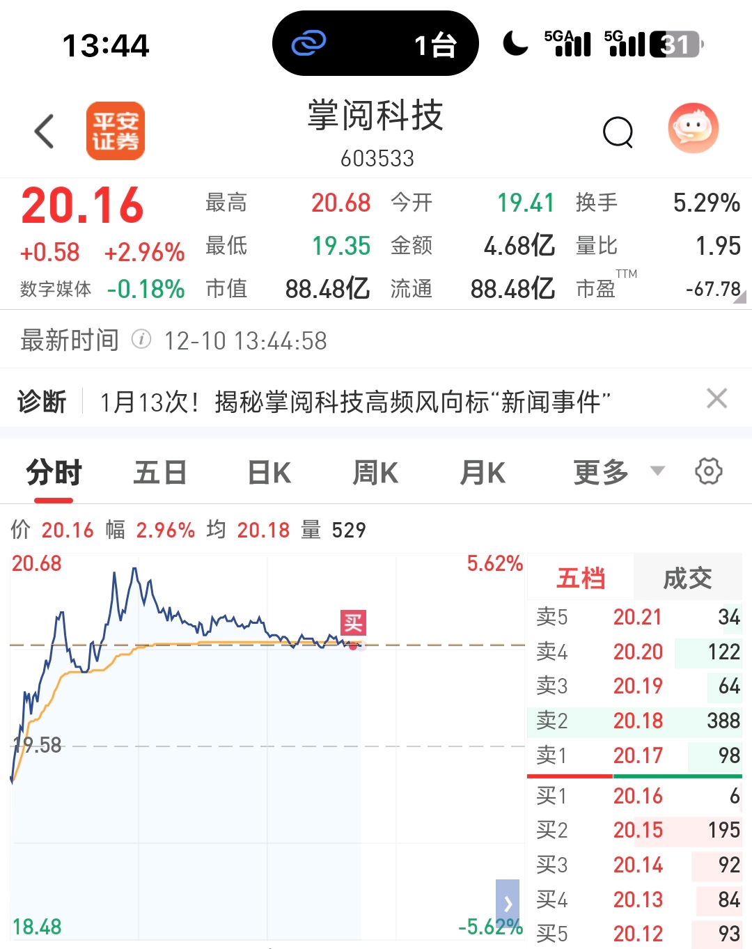 $掌阅科技(SH603533)$ 20.15抄底,明天会大涨