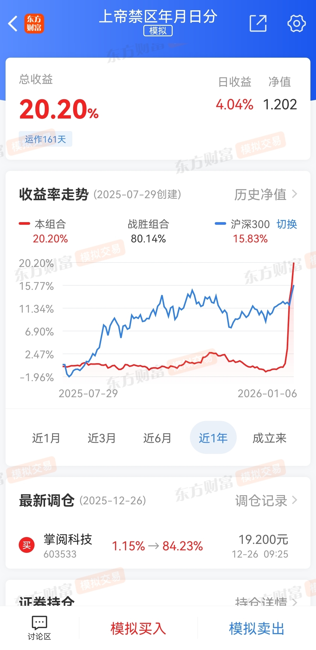 模拟组合!12月26日买入!估计没人会看!我说的压力位,估计也没人会看,也没人会当真