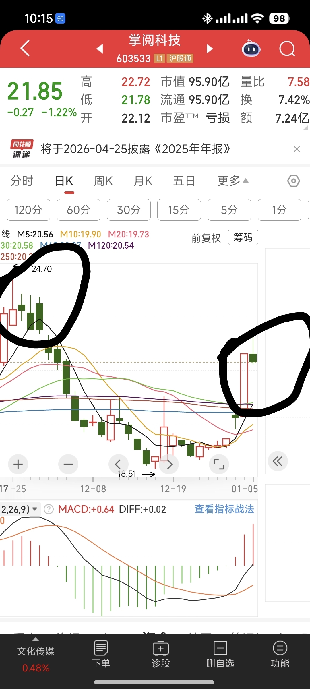 $掌阅科技(SH603533)$ 阶段高点等回调,