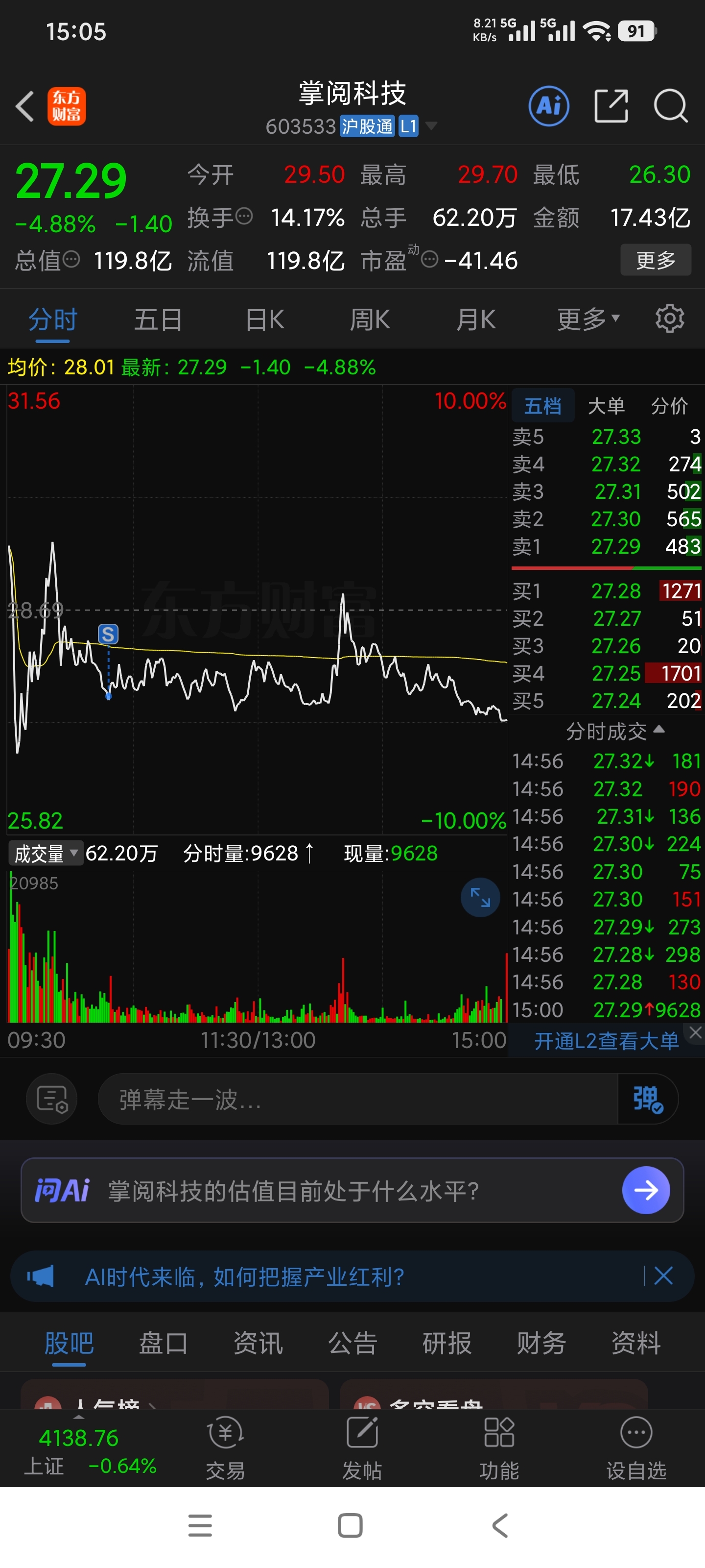 $掌阅科技(SH603533)$ 一个涨停都没有,真拉……浪费时间还好吃十几个点走的