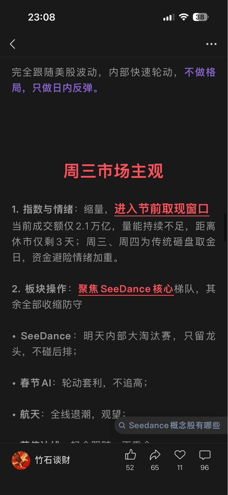 每天晚上我都会看看,这样明天确定性更高点