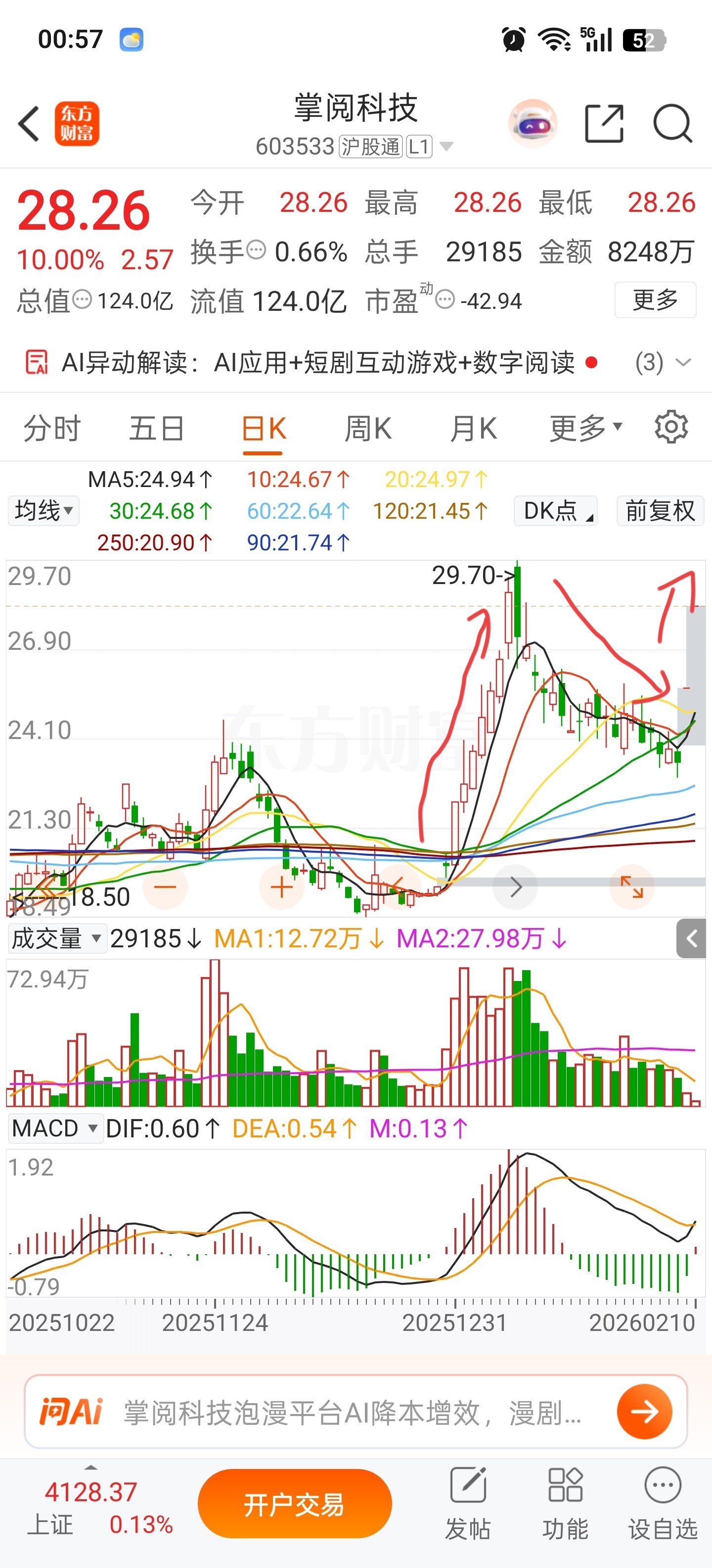 $掌阅科技(SH603533)$ 拿货→洗盘→等待发消息→拉高出货