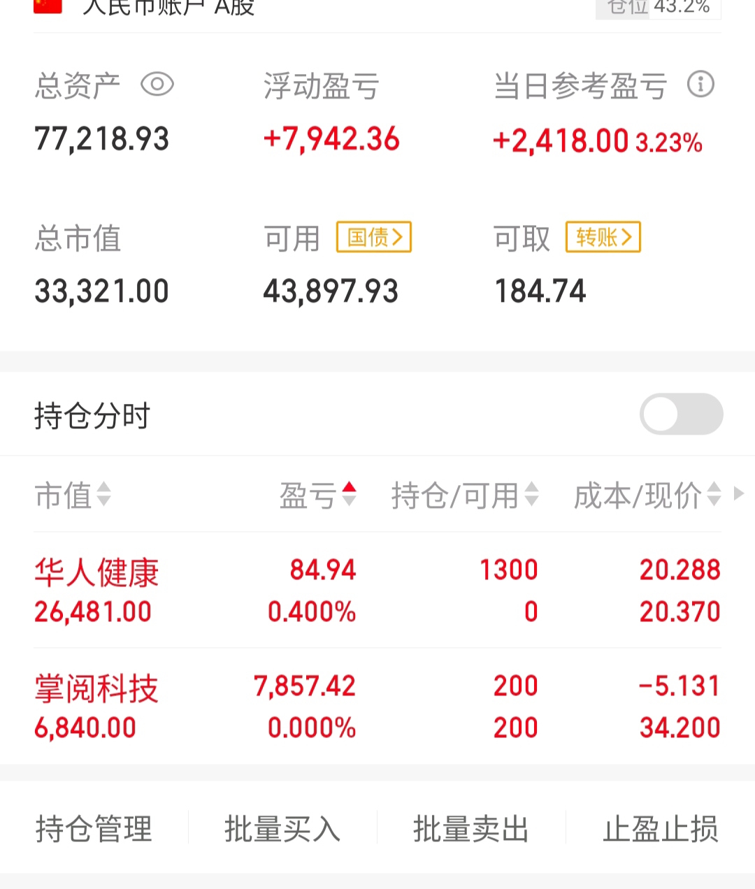 $掌阅科技(SH603533)$ 随便你了,反正也没买多少,今天卖了就剩200股零成本