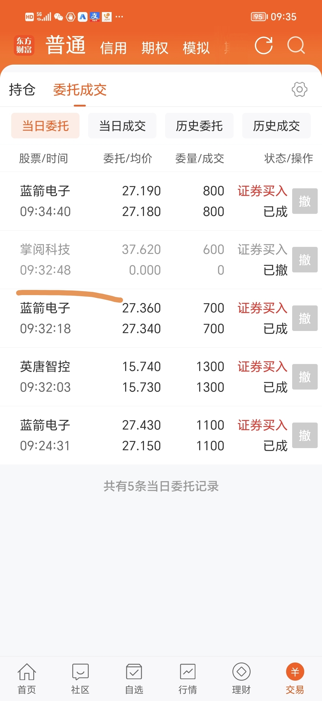 $掌阅科技(SH603533)$ 今天要不是过节,我说什么也会买掌阅,因为害怕假期太长有变动没买。平时一直说龙头,很多时候这是个谬论,因为很难说哪个票是龙头,这次字节的热点,掌阅火山引擎是核心概念。人名网竞价5个点,也觉得要涨停,但是也是因为假期不想打板,怕节后有变动。今天买了9成仓位蓝箭,下午再卖底仓,跌了这么久了,应该跌不动了。