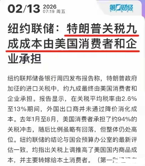 纽约联邦储备银行刚刚发布的报告提到,特朗普政府加征的关税成本中的大部分(约90%)都是由美国消费者和企业承担。