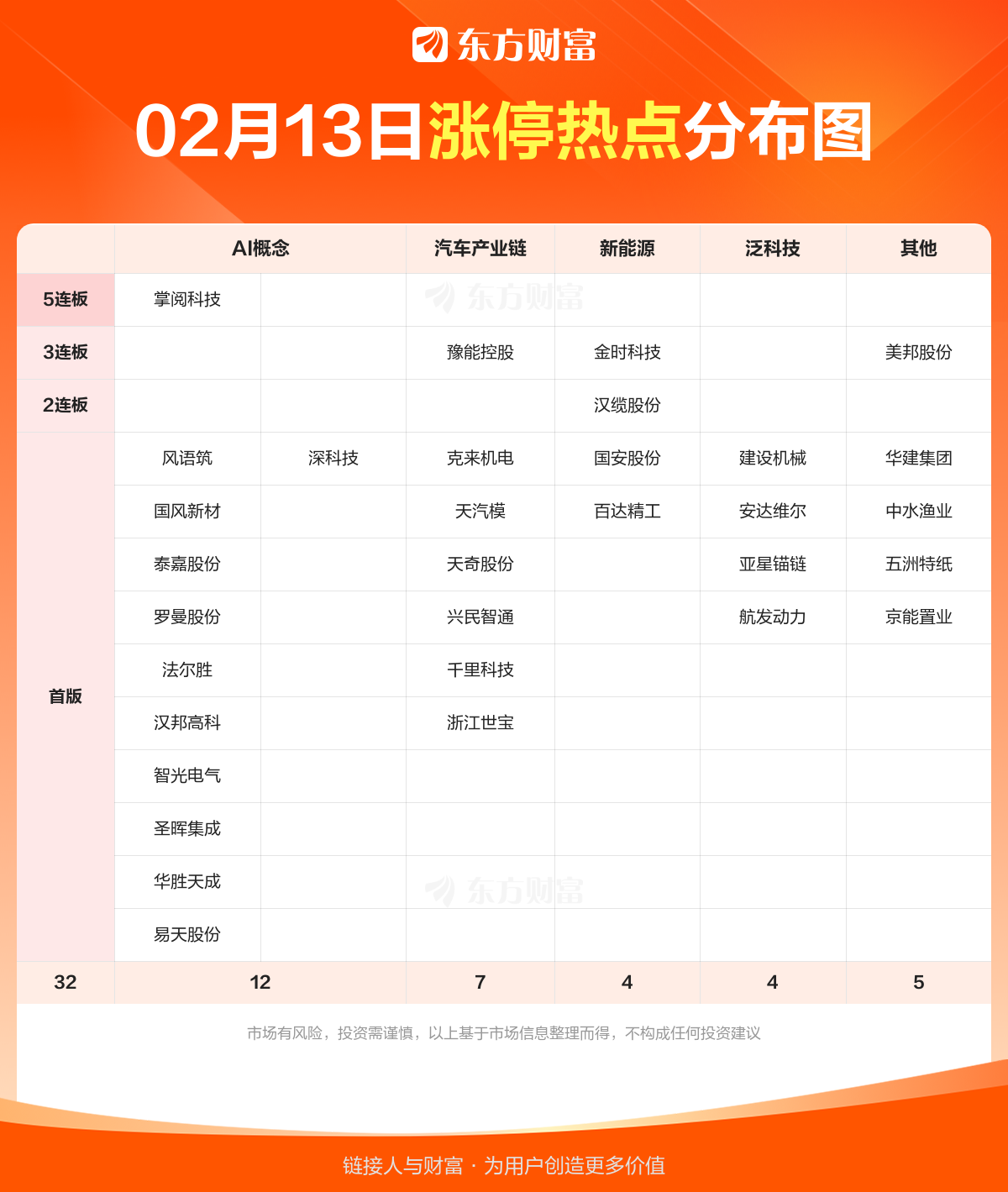 1 船舶制造 中国船企获大订单提振行业景气度,全球造船业迎来上行周期预期 相关个股:$亚星锚链(601890)$、$江龙船艇(300589)$、$海兰信(300065)$、$天海防务(300008)$、$国瑞科技(300600)$ 2 昇腾384超节点 AI算力需求激增导致高端芯片供应紧张,国产替代加速推动行业景气度提升。 相关个股:$曙光数创(920808)$、$申菱环境(301018)$、$英维克(002837)$(昨日首板)、$拓维信息(002261)$、$中际旭创(300308)$ 3 数字水印 网信部门严打无AI标识虚假信息,推动数字水印技术需求激增 相关个股:$汉邦高科(300449)$、$数码视讯(300079)$、$亚信安全(688225)$、$北信源(300352)$、$恒信东方(300081)$ 4 人形机器人 特斯拉宣布第三代人形机器人Optimus V3即将量产,预计年产百万台,引发市场对产业链的强烈关注。 相关个股:$天奇股份(002009)$、$风语筑(603466)$(5天3板)、$双林股份(300100)$、$ST逸飞(688646)$、$华兴源创(688001)$ 5 商业航天 商业航天融资升温,太空光伏和卫星星座规划成为新增长点 相关个股:$安达维尔(300719)$、$华丰科技(688629)$、$星环科技(688031)$、$航发控制(000738)$、$必创科技(300667)$市场热点