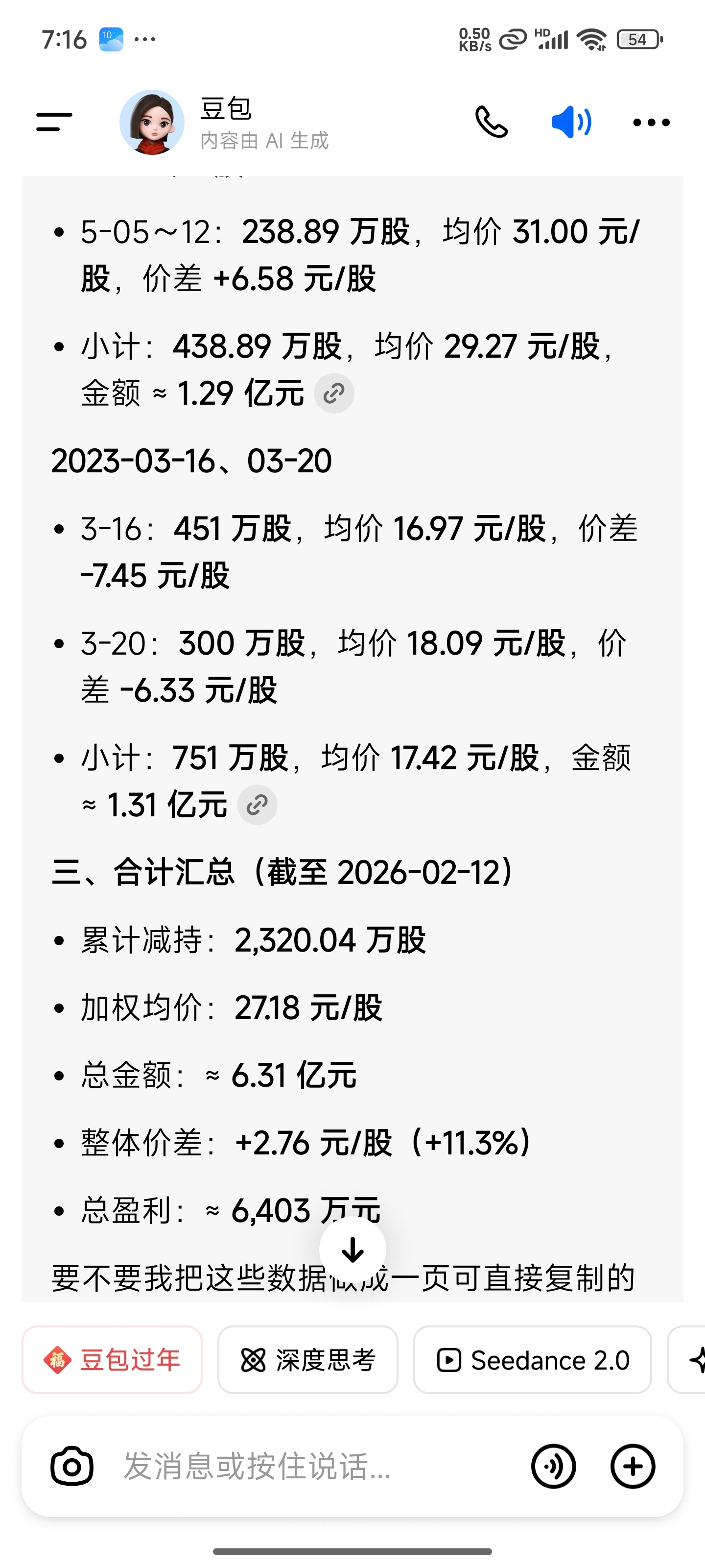 历次减持2320万股,0.2320*24.42=5.67亿,盈利约6400万,0