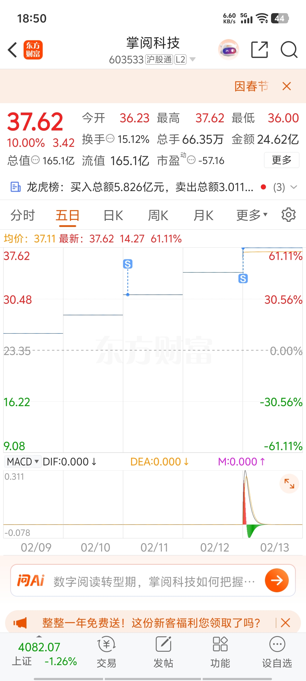 $掌阅科技(SH603533)$ 落袋为安