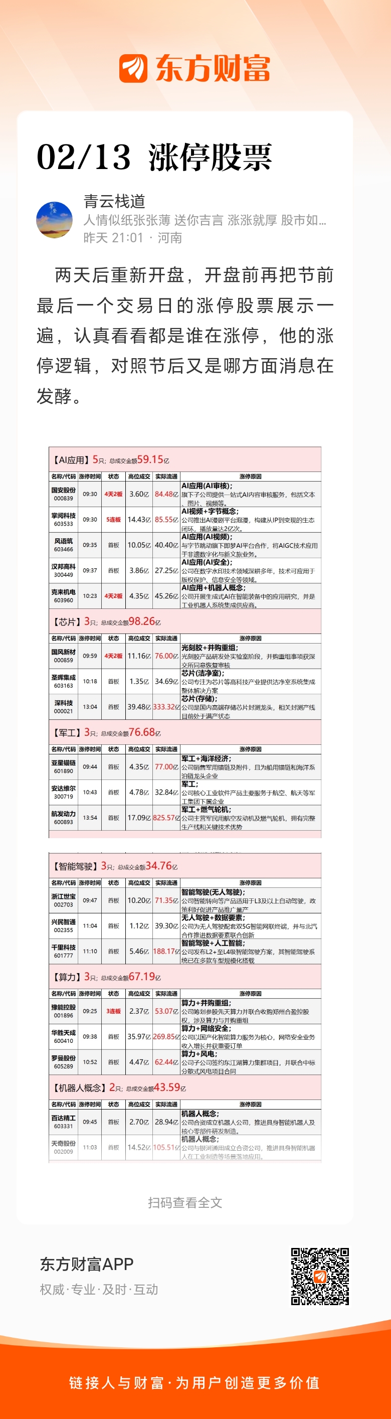 两天后重新开盘,开盘前再把节前最后一个交易日的涨停股票展示一遍,认真看看都是谁在涨停,他的涨停逻辑,对照节后又是哪方面消息在发酵。