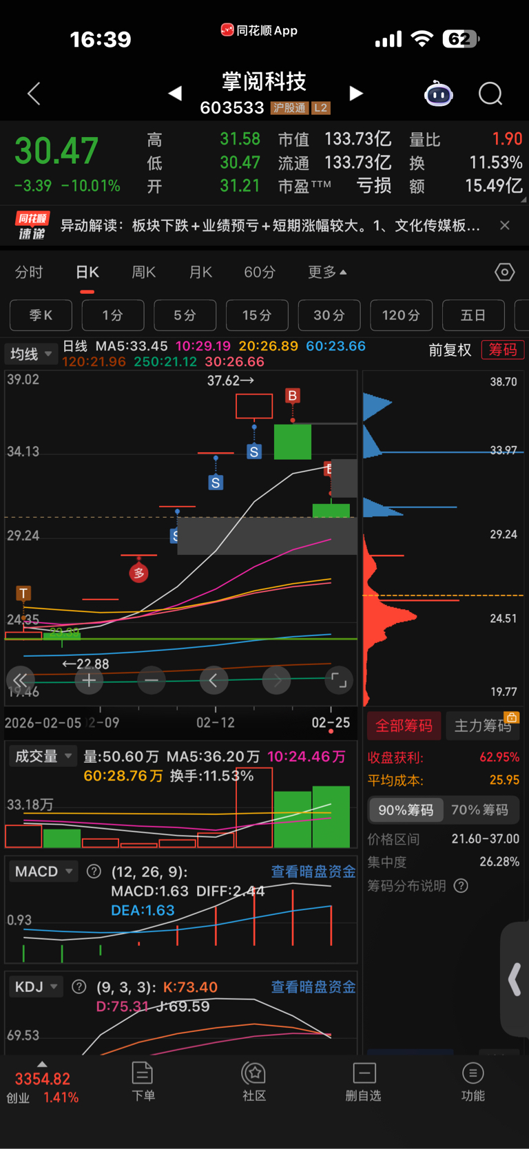 $掌阅科技(SH603533)$ 给我砸,继续地板,每天地板接一点