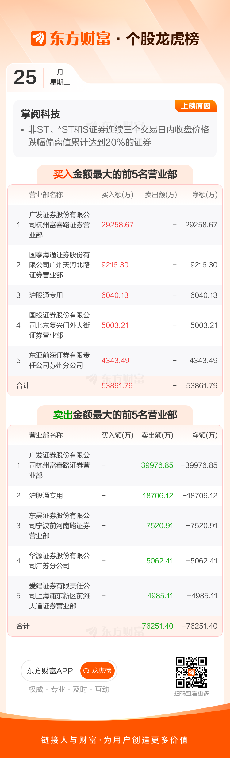 掌阅科技(603533)龙虎榜数据(02-25)