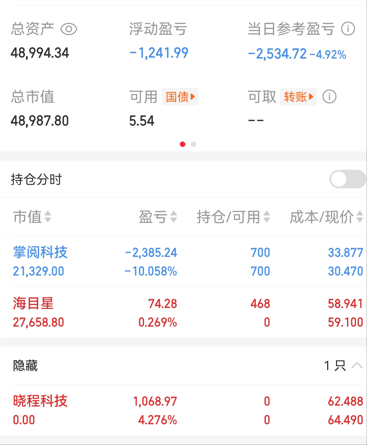 $掌阅科技(SH603533)$ $晓程科技(SZ300139)$ $海目星(SH688559)$ 5万,第2天运气有点差,没跑继续跌停