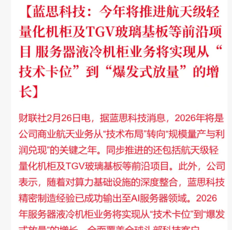 $沃格光电(SH603773)$ 2026 CES蓝思官宣:采购沃格TGV核心基材用于终端产品,沃格为蓝思提供玻璃基封装载板/TGV玻璃基板,属供应链合作$润泽科技(SZ300442)$ $聚飞光电(SZ300303)$