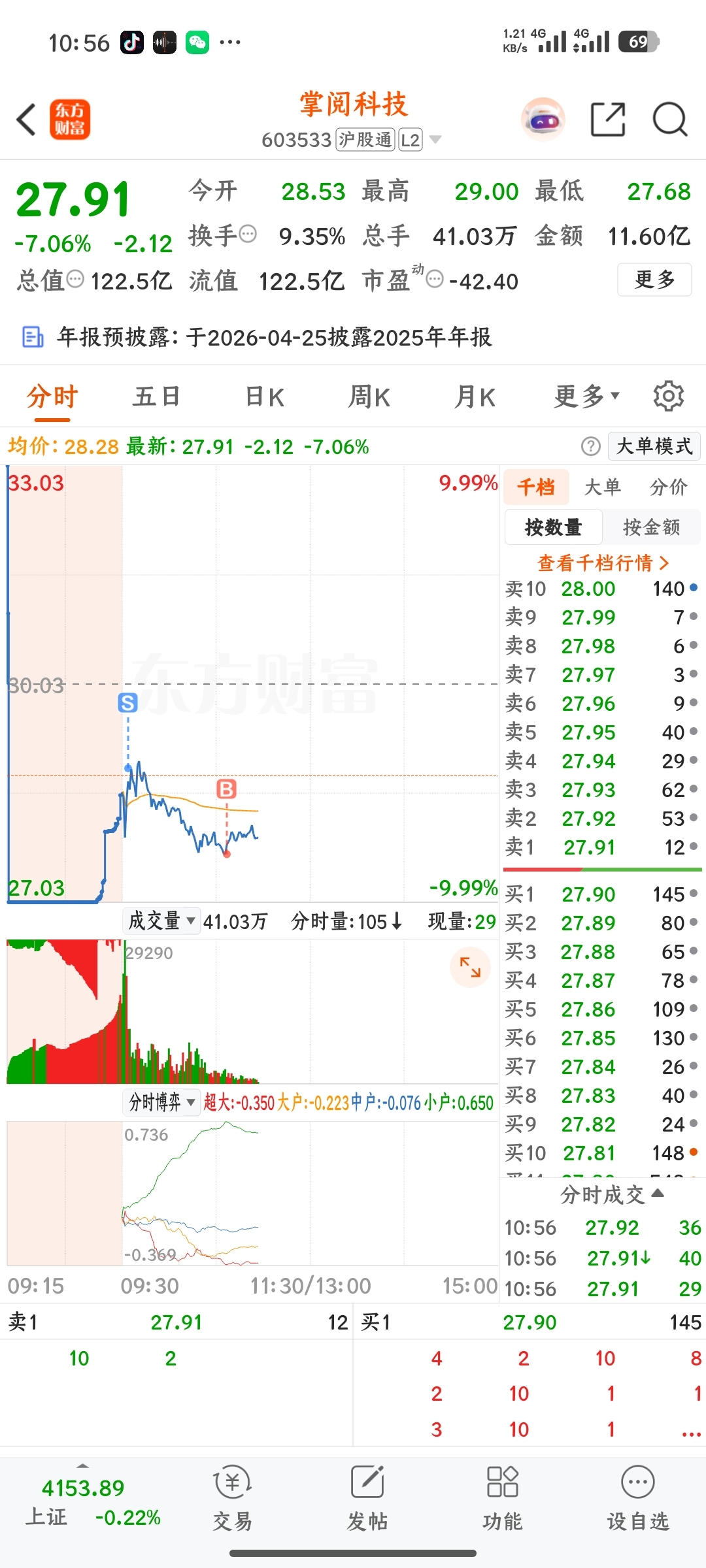 $掌阅科技(SH603533)$ 周五买的,套着了