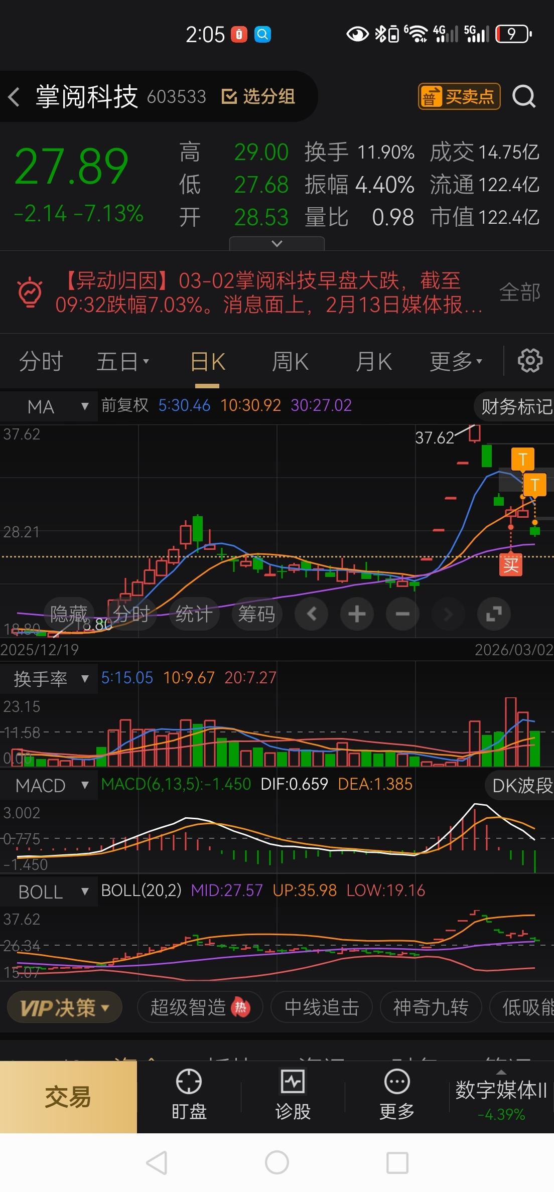 $掌阅科技(SH603533)$ 借势再洗洗,再低点好加仓,现在成本价26元