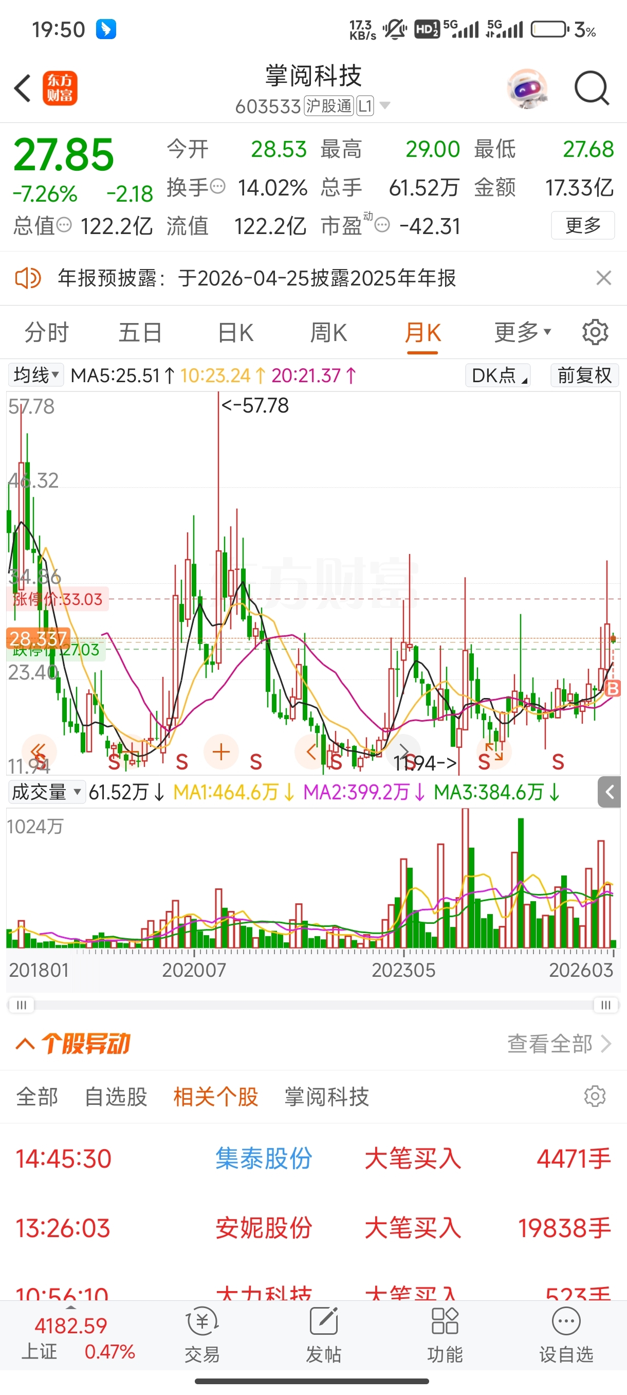 $掌阅科技(SH603533)$ 看月线还真没涨多少,前几年业绩好时候也不涨,不好也不涨,
