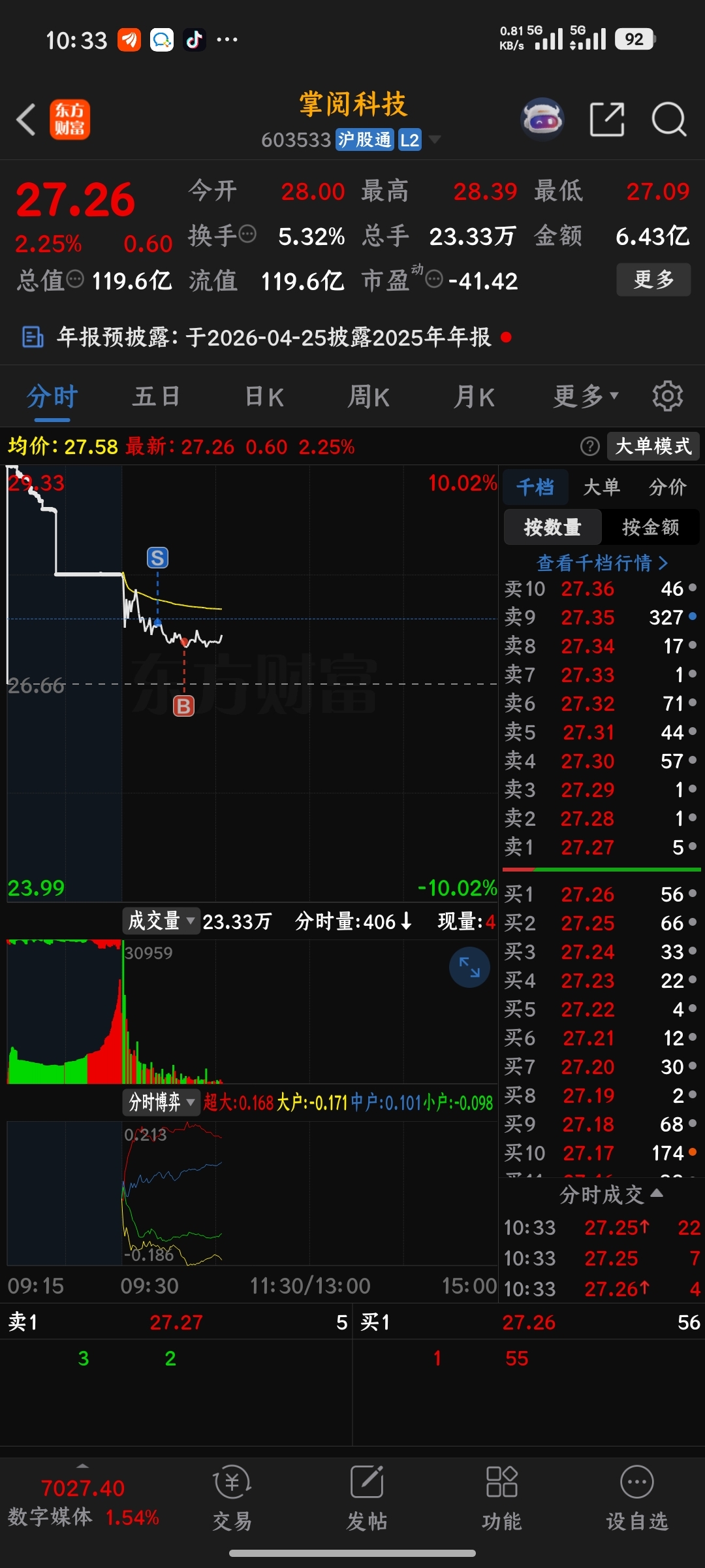 $掌阅科技(SH603533)$ 竞价没卖是我的错