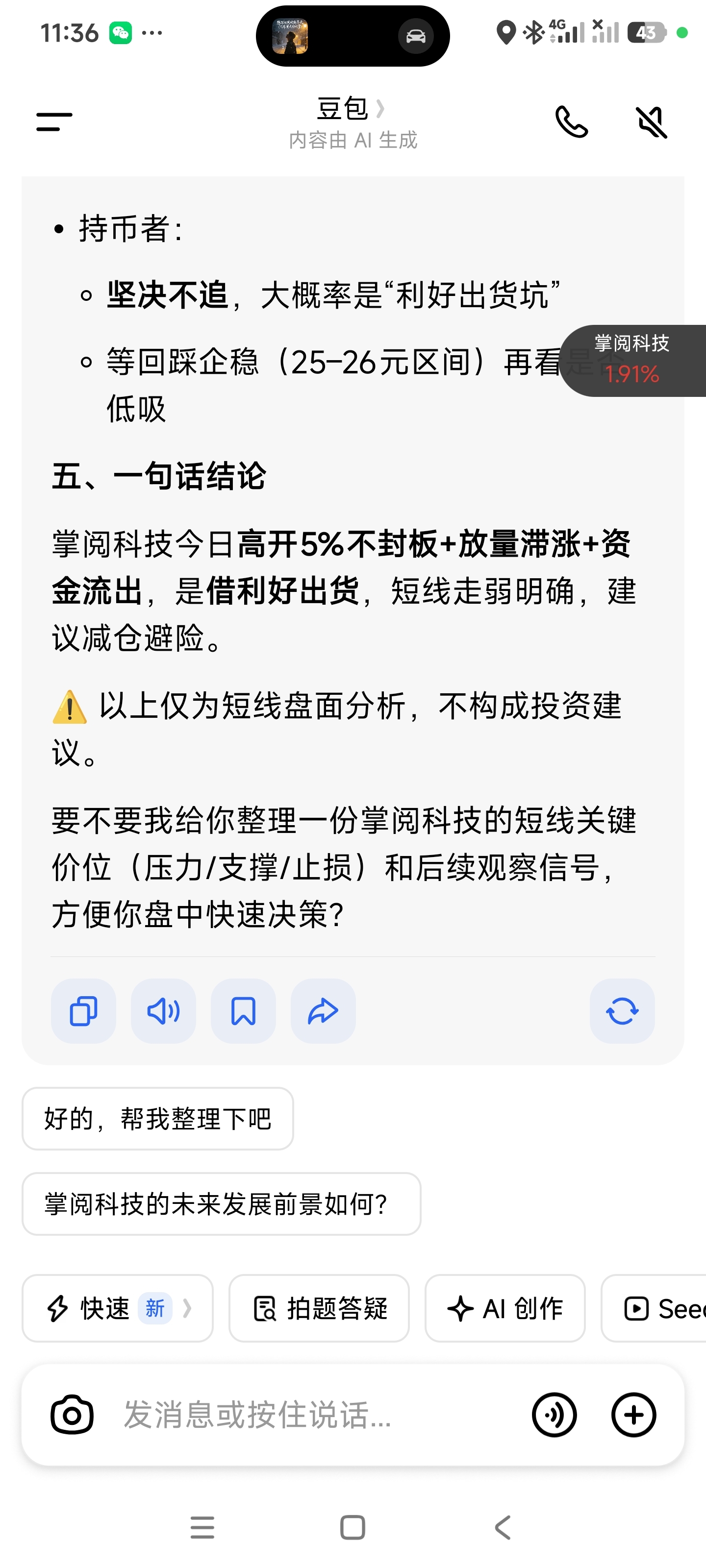 $掌阅科技(SH603533)$ 豆包说了,借利好出货
